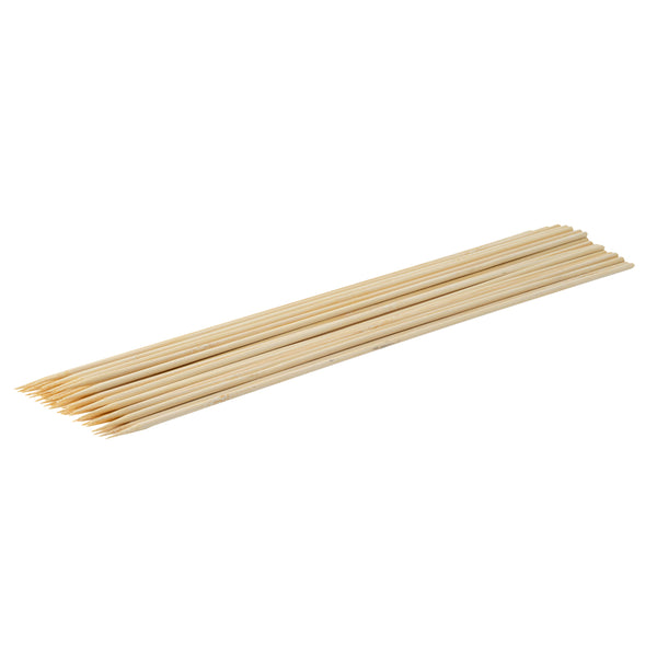 Roast and grill various meats and vegetables using our Robata Sturdy Natural Bamboo Grilling Skewers. Constructed from heavy-duty bamboo, these 16-inch skewers are a great eco-friendly alternative from traditional plastic skewers. Plus, these bamboo skewers won't burn when grilling or baking ingredients if soaked in water for at least 30 minutes before use. To avoid hectic cleaning after events, these single-use bbq sticks are easily disposable. These skewers for grilling withstand freezer temperatures to conveniently store leftover or premade skewers. These bamboo roasting sticks measure 16 inches in length by 1.57 inches in width, ideal to hold fresh fruits or grilled meat. Sold in a 100 count box.