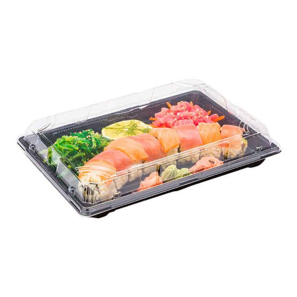 BLACK PLASTIC X LARGE TAKE OUT SUSHI TRAY - WITH CLEAR LID
