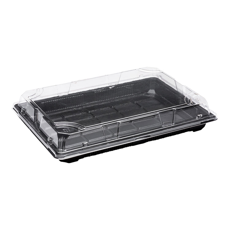 BLACK PLASTIC X LARGE TAKE OUT SUSHI TRAY - WITH CLEAR LID