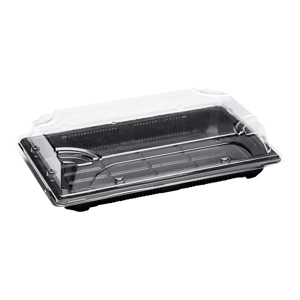 RECTANGLE BLACK PLASTIC LARGE TAKE OUT SUSHI TRAY - WITH CLEAR LID