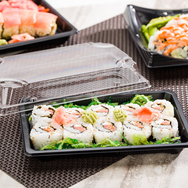 Each order includes coordinating lids that securely snap onto the containers to seal in food and keep meals fresh. Our lids also have a clear finish for showing off your sushi rolls or appetizers.