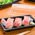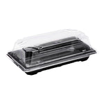 RECTANGLE BLACK PLASTIC SMALL TAKE OUT SUSHI TRAY - WITH CLEAR LID