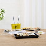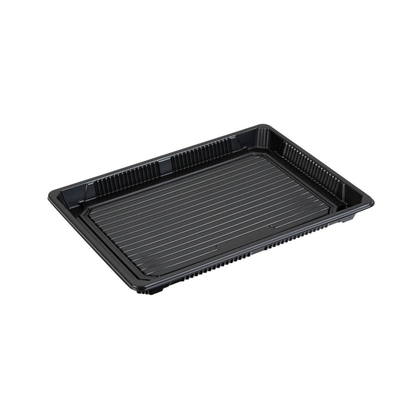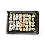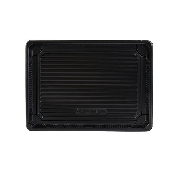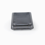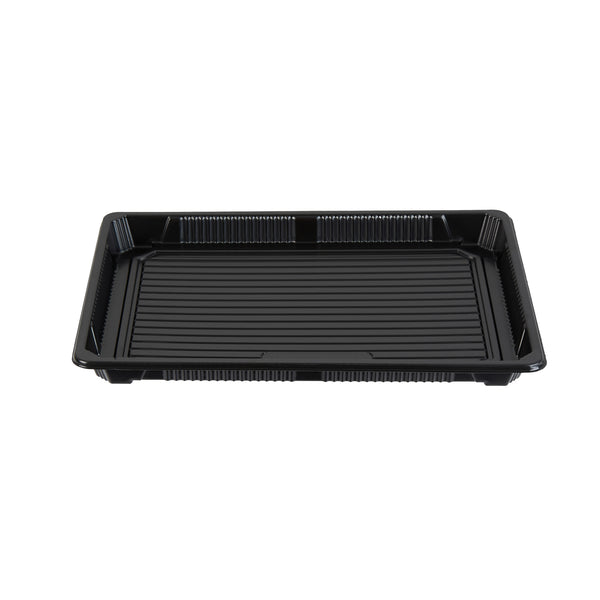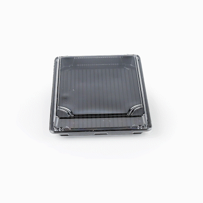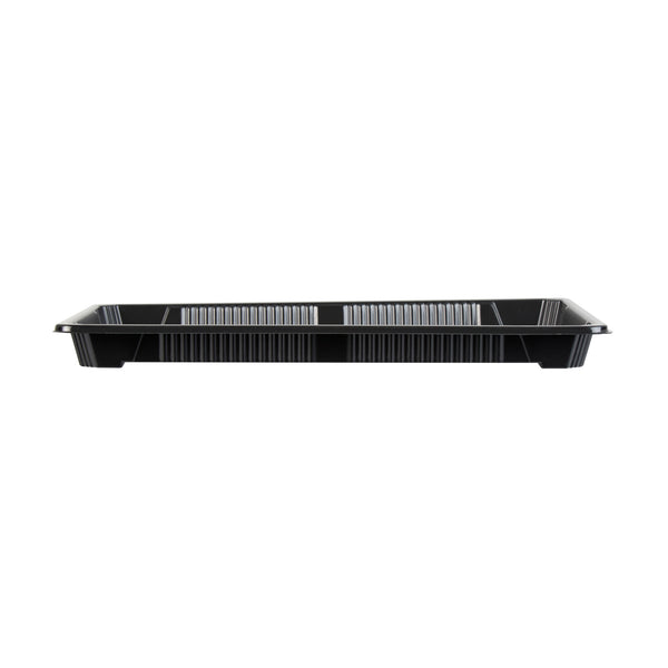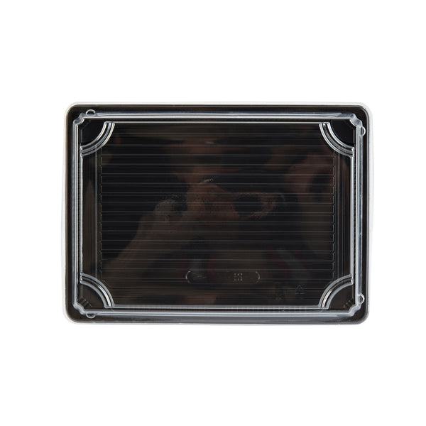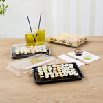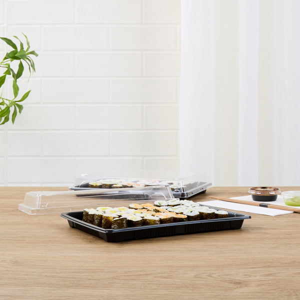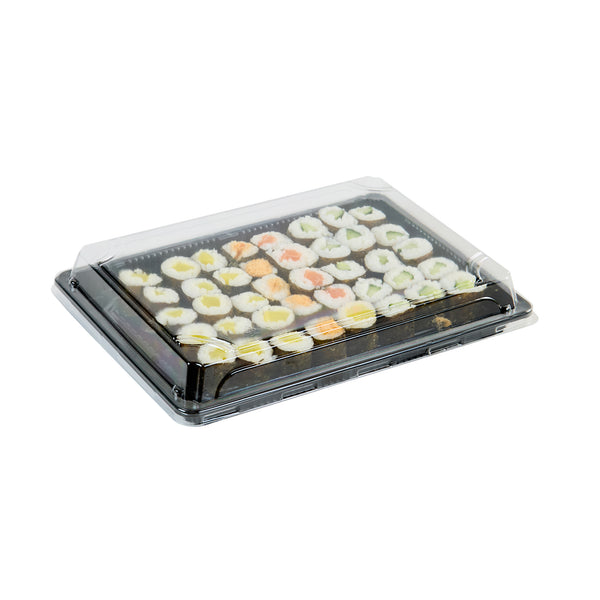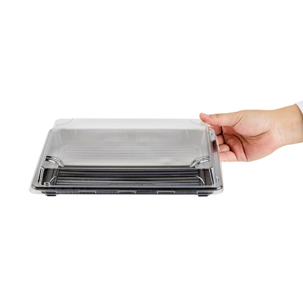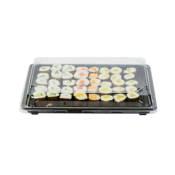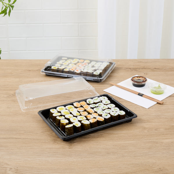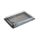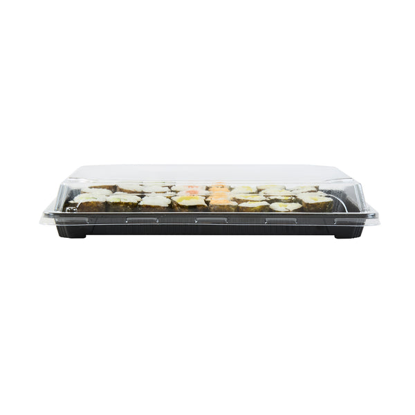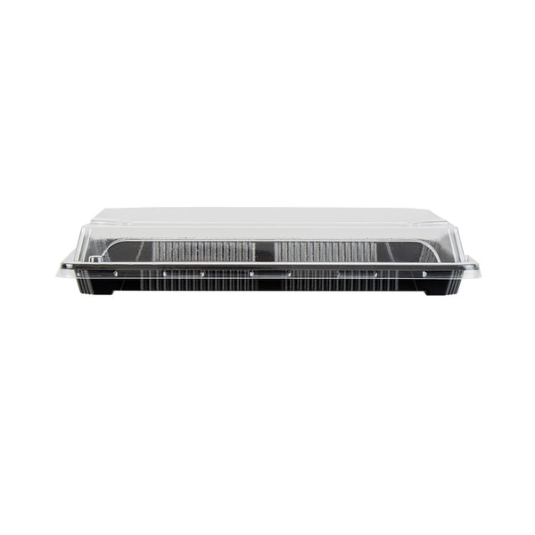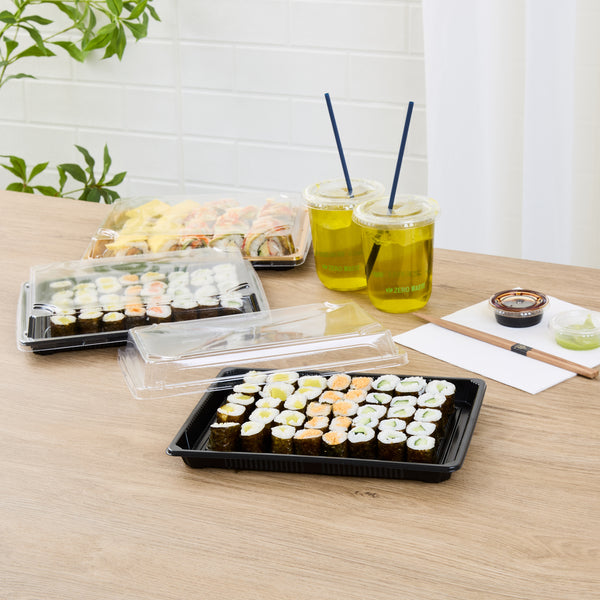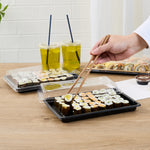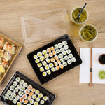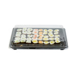 RECTANGLE BLACK PLASTIC TAKE OUT SUSHI TRAY - WITH CLEAR LID