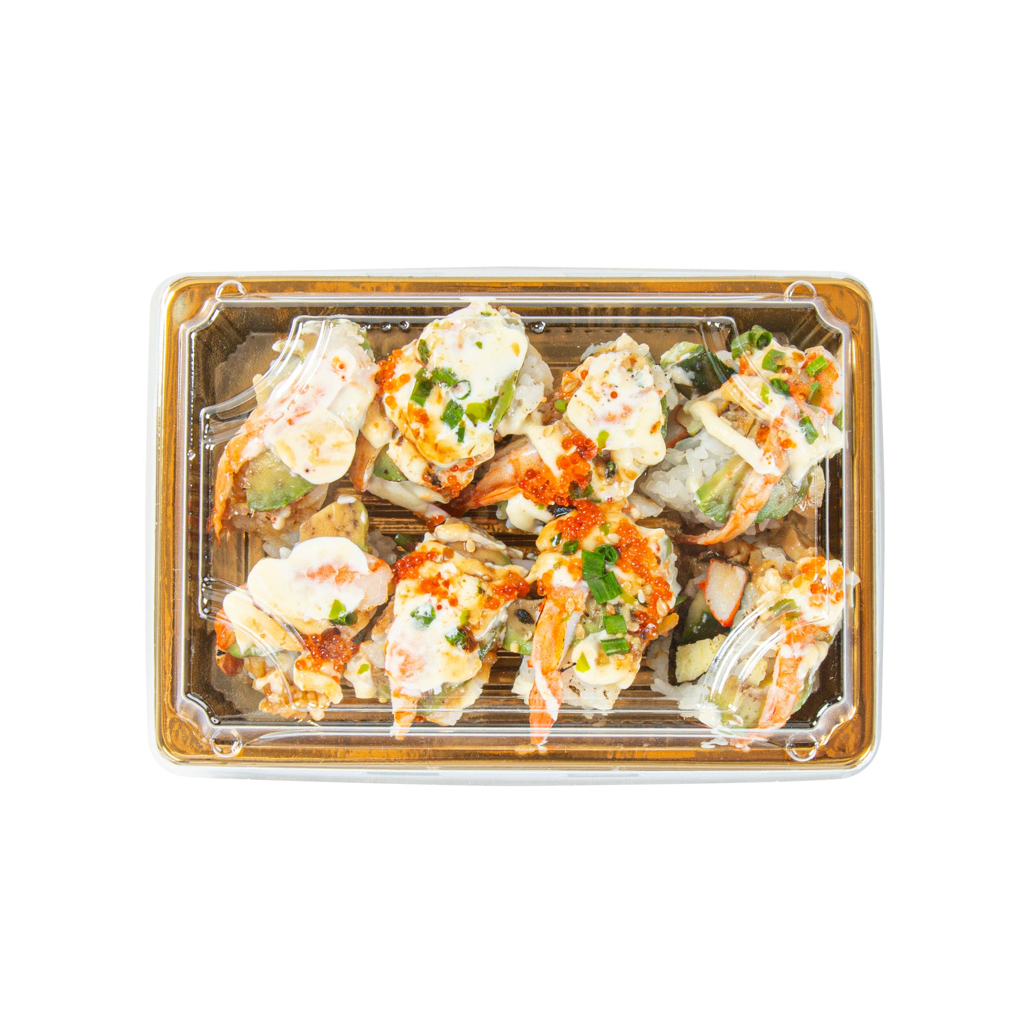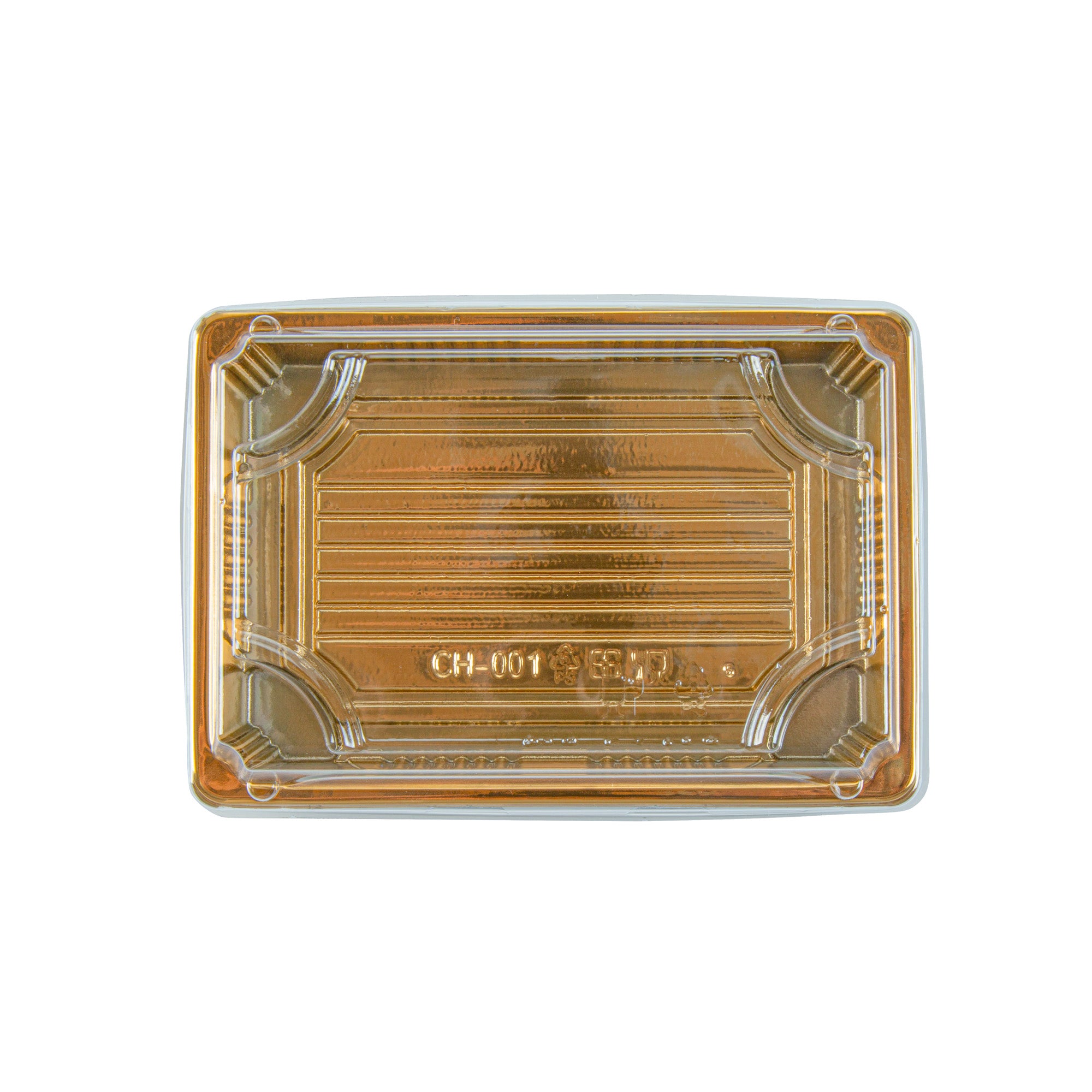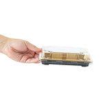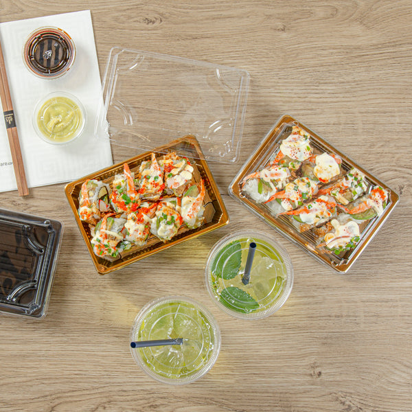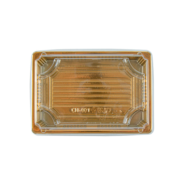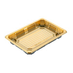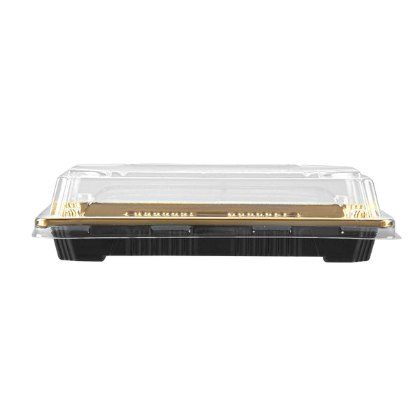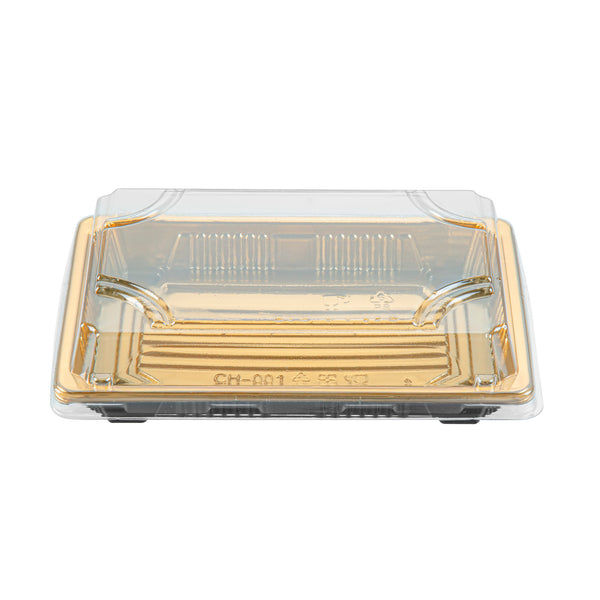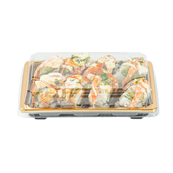 RECTANGLE GOLD PLASTIC TAKE OUT SUSHI TRAY - WITH CLEAR LID