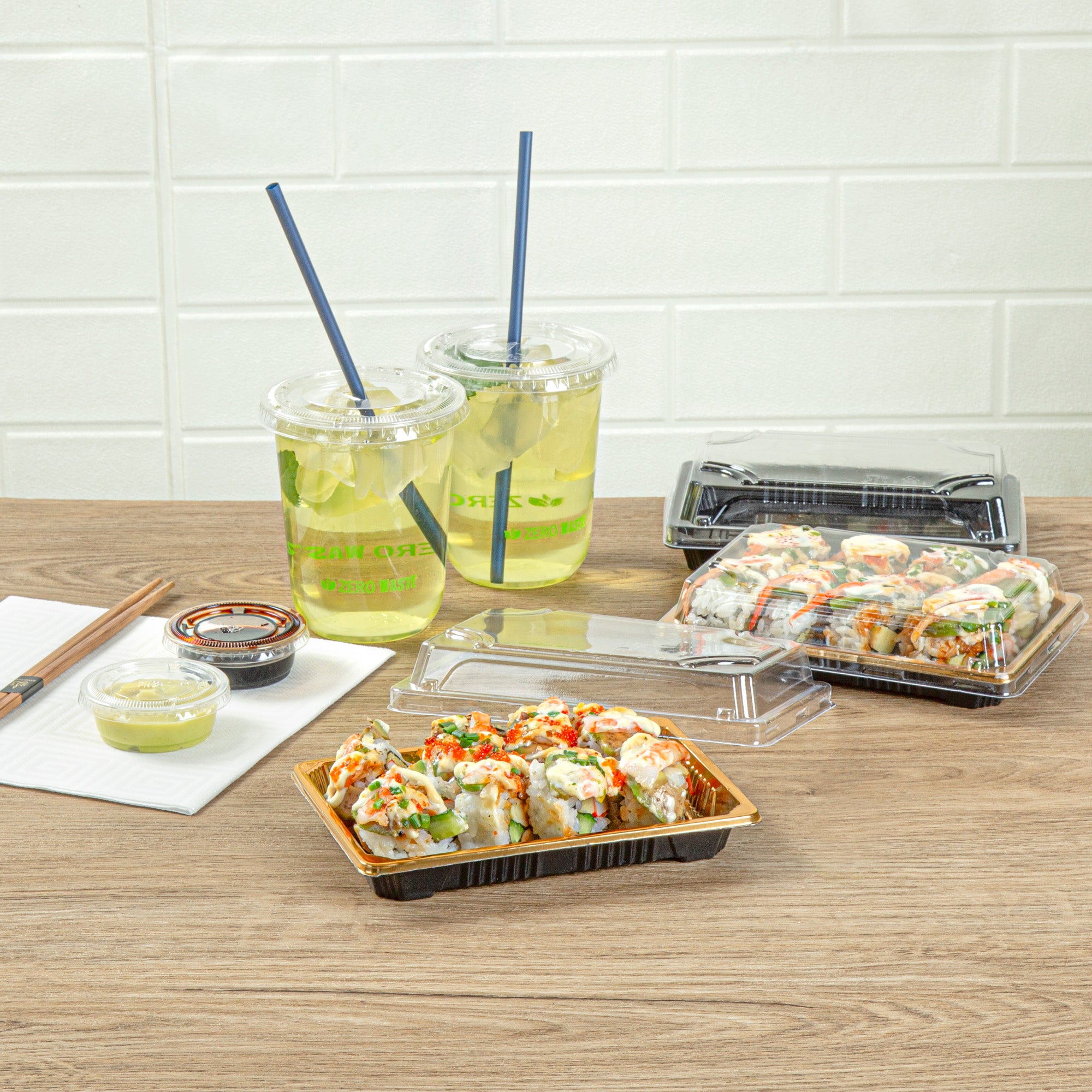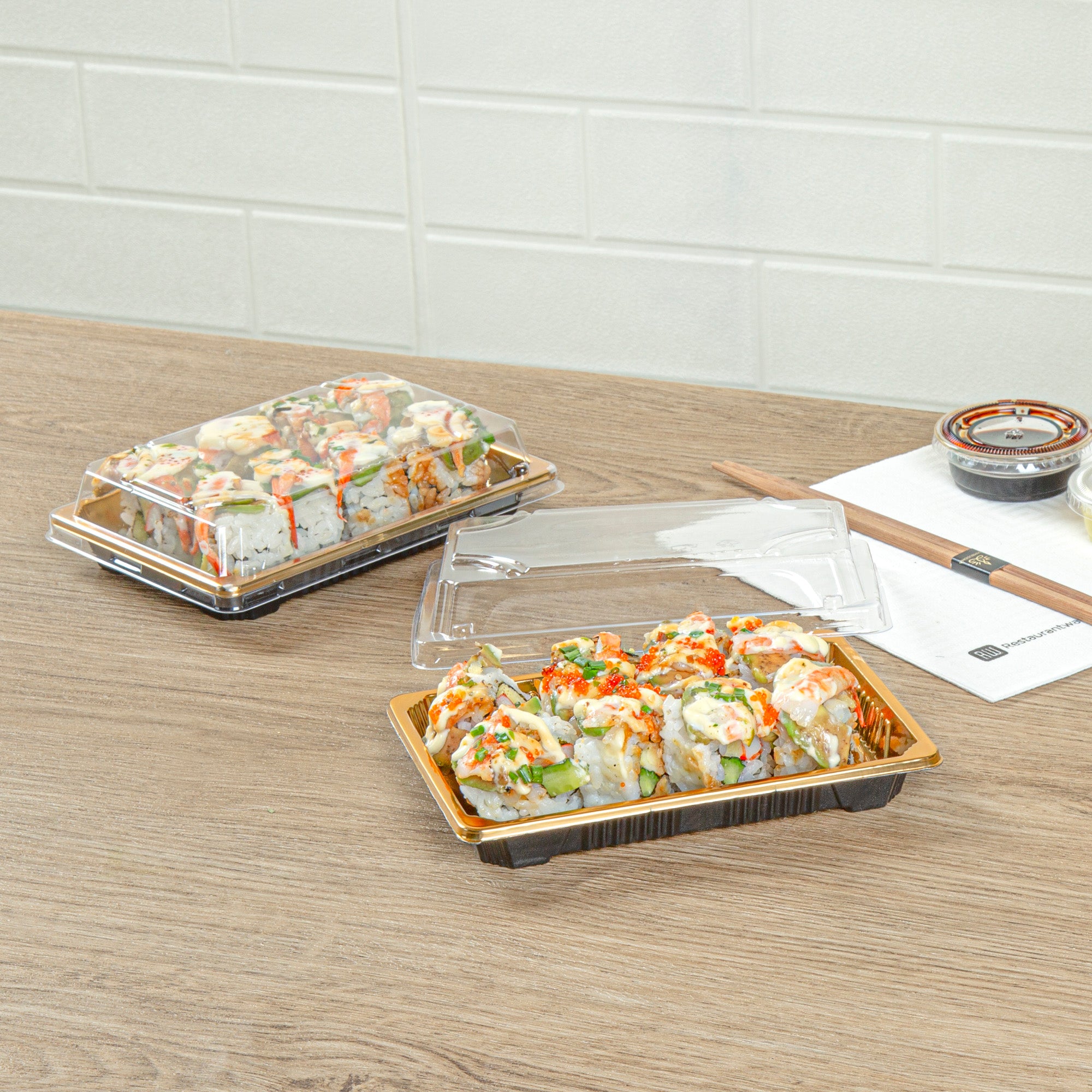 - Snap-on lids keep sushi fresh for takeout