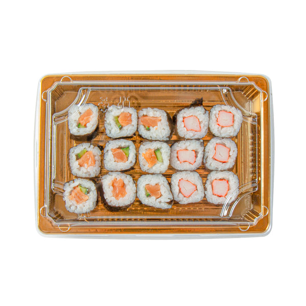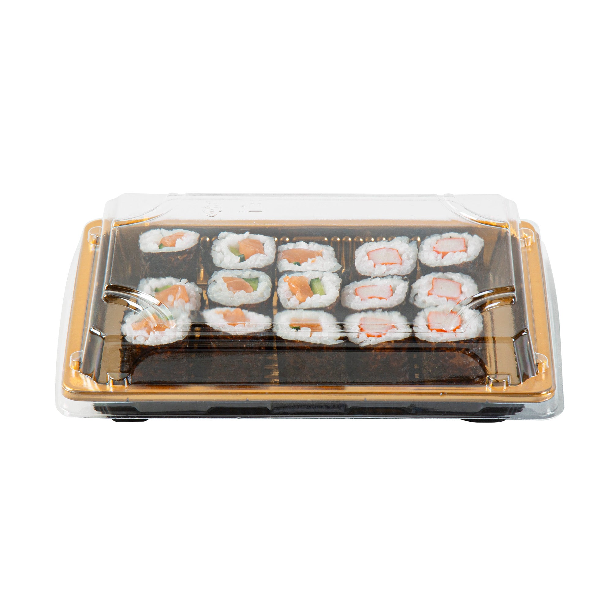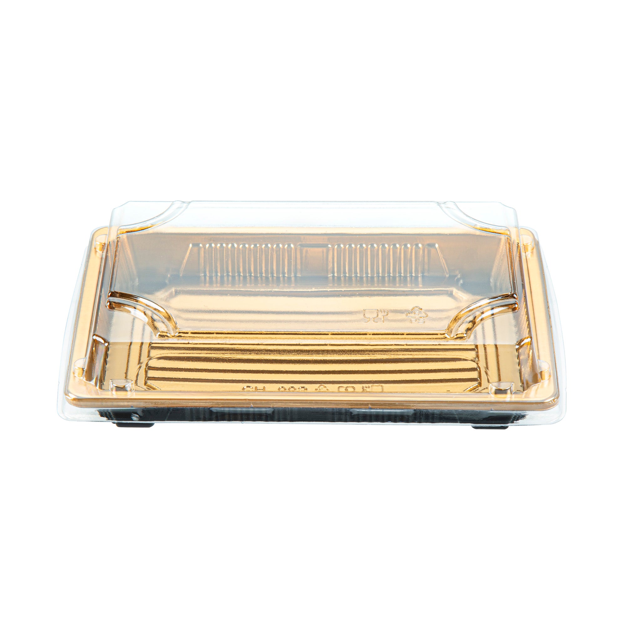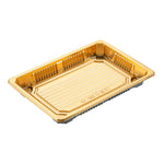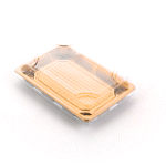 RECTANGLE GOLD PLASTIC TAKE OUT SUSHI TRAY - WITH CLEAR LID