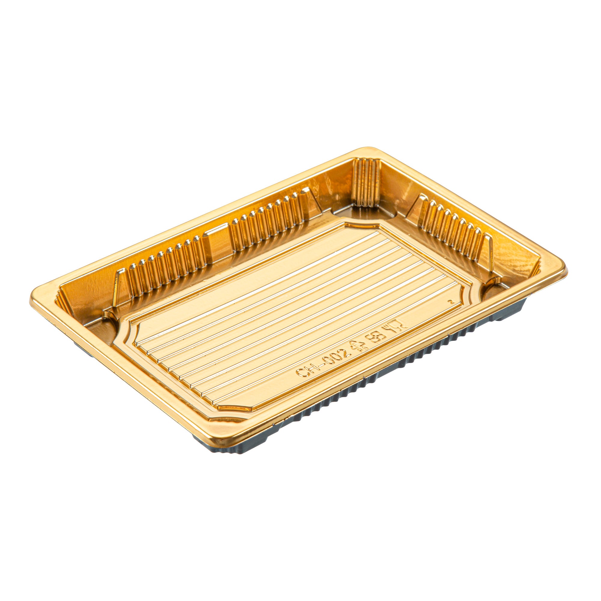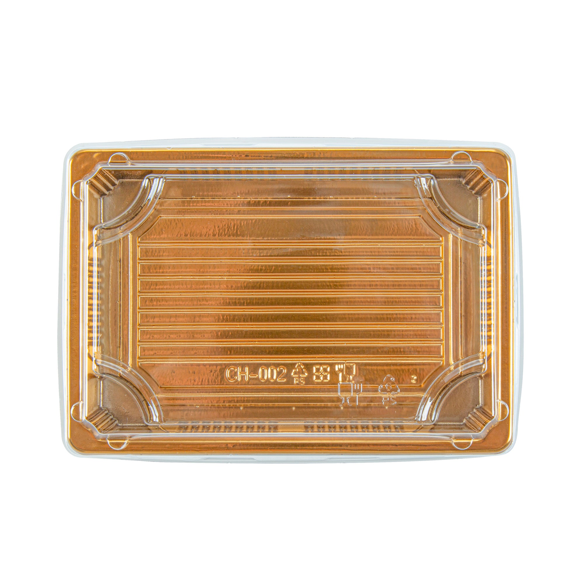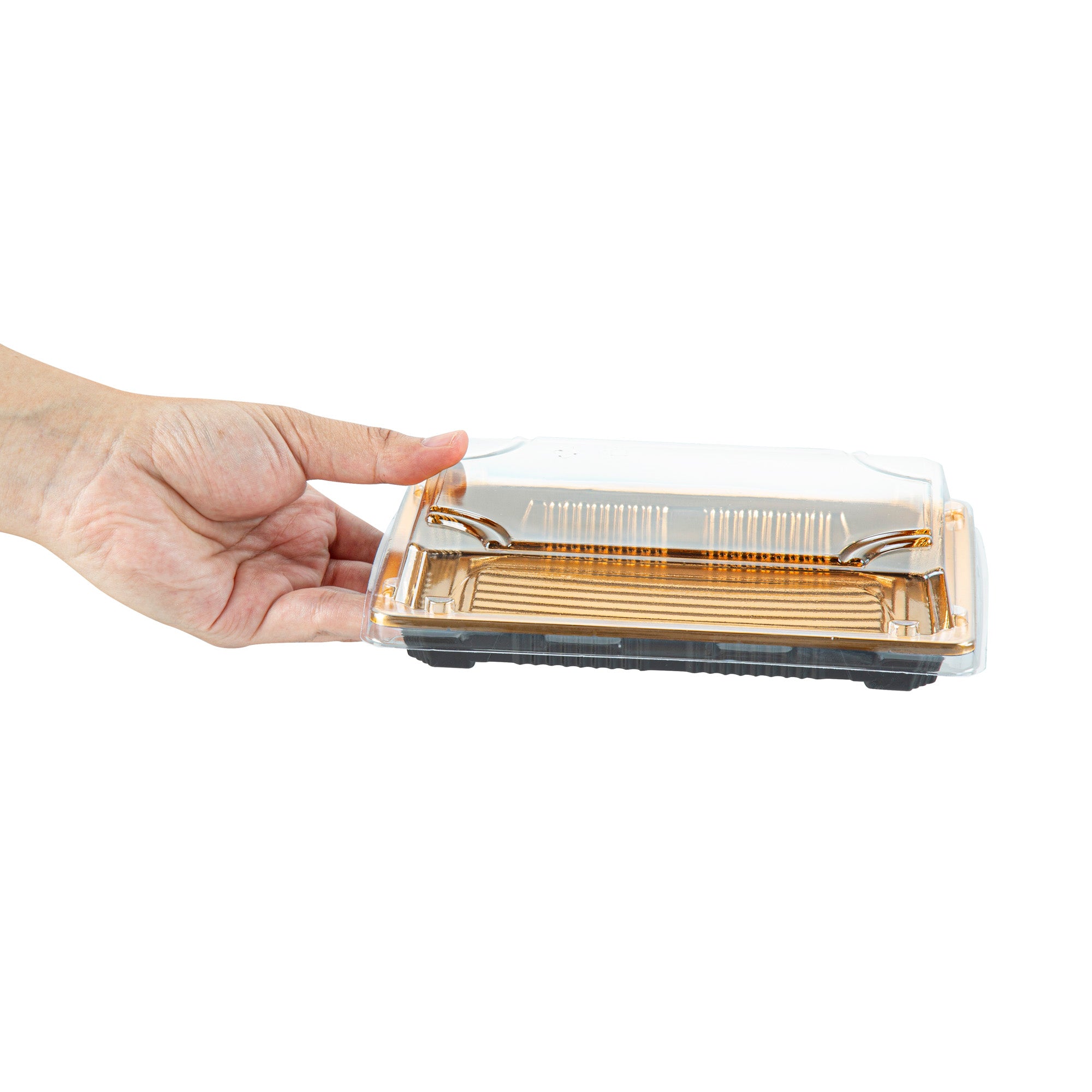 RECTANGLE GOLD PLASTIC TAKE OUT SUSHI TRAY - WITH CLEAR LID