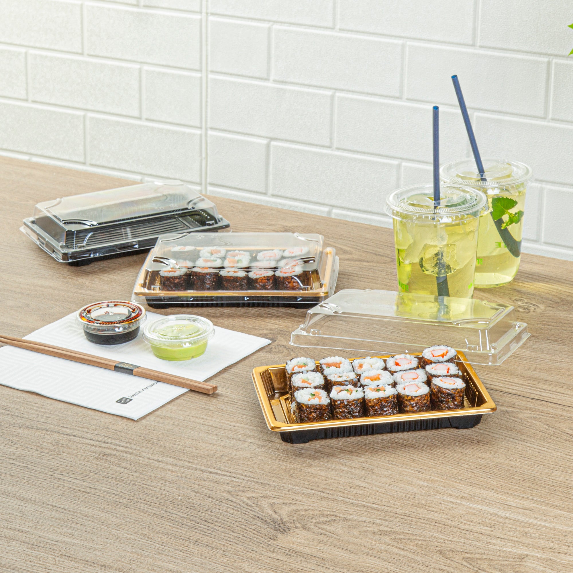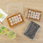 - Snap-on lids keep sushi fresh for takeout