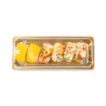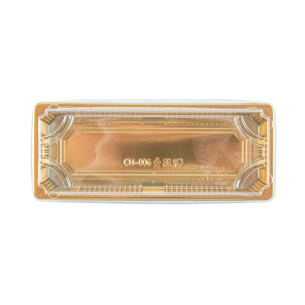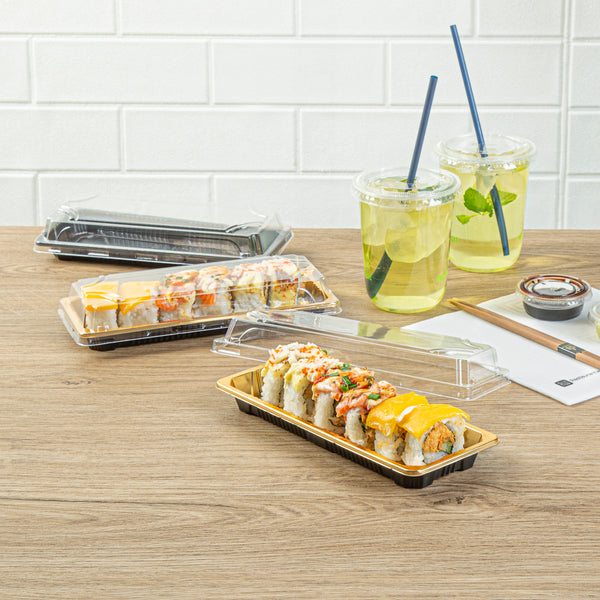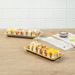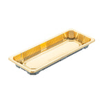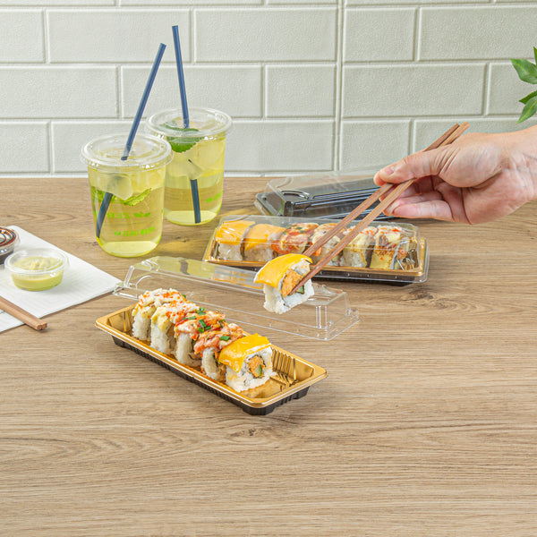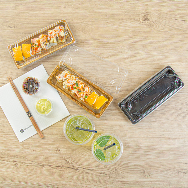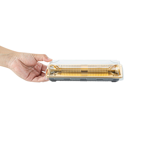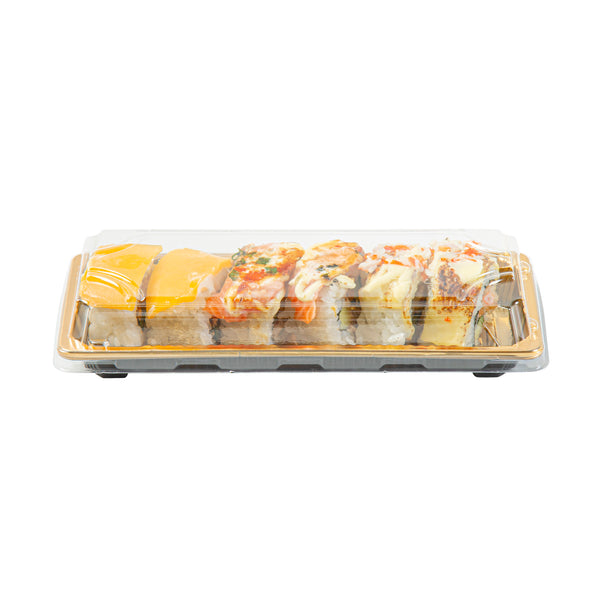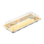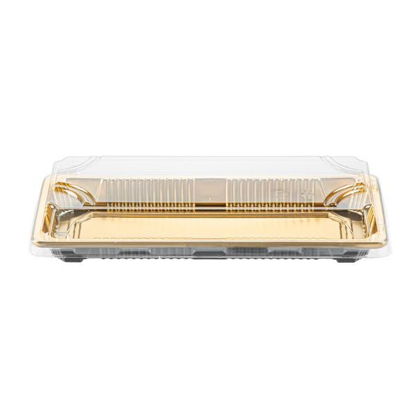 RECTANGLE GOLD PLASTIC TAKE OUT SUSHI TRAY - WITH CLEAR LID
