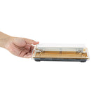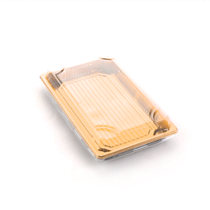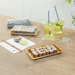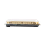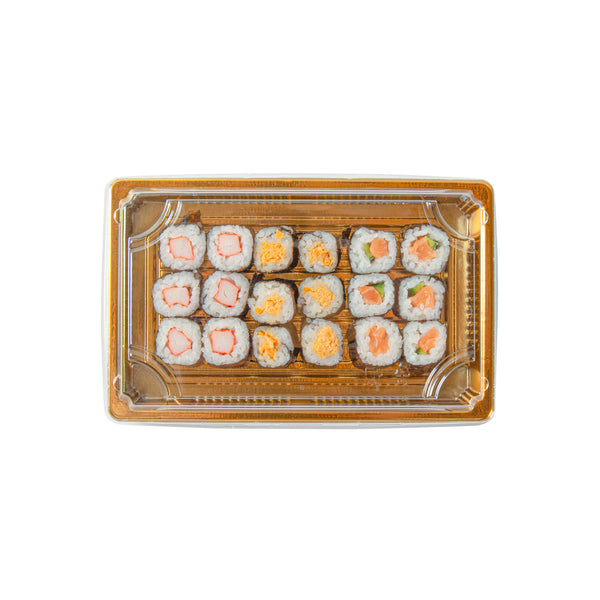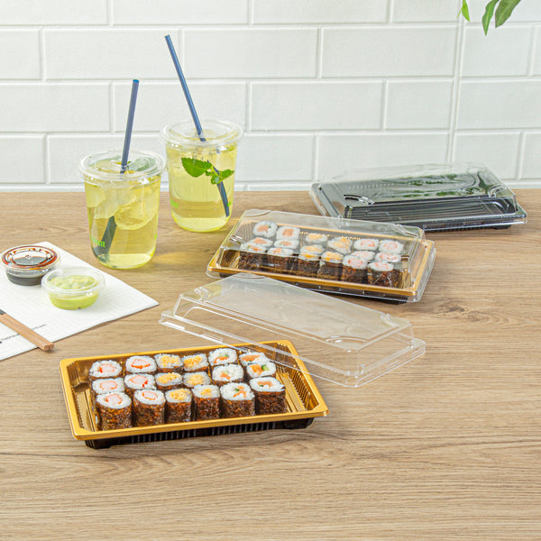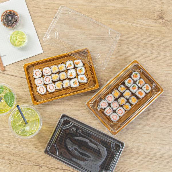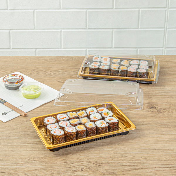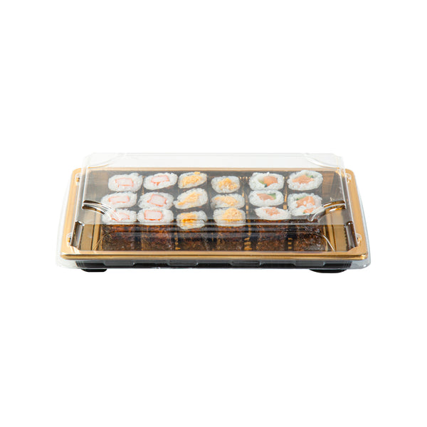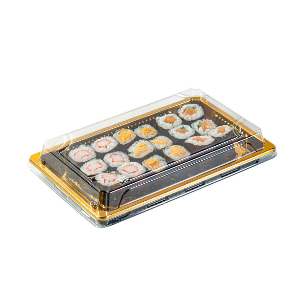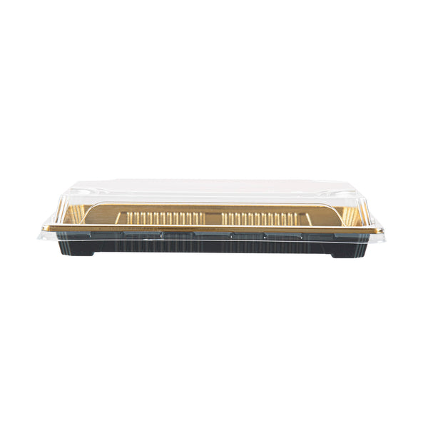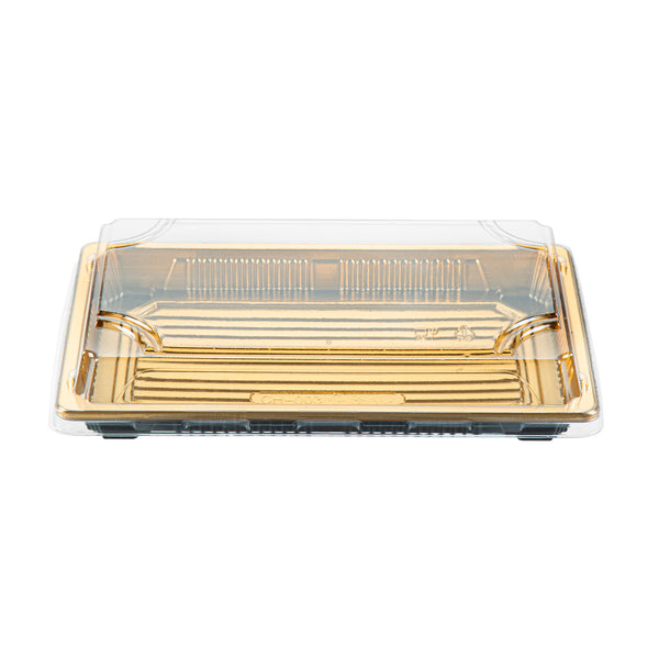 RECTANGLE GOLD PLASTIC TAKE OUT SUSHI TRAY - WITH CLEAR LID