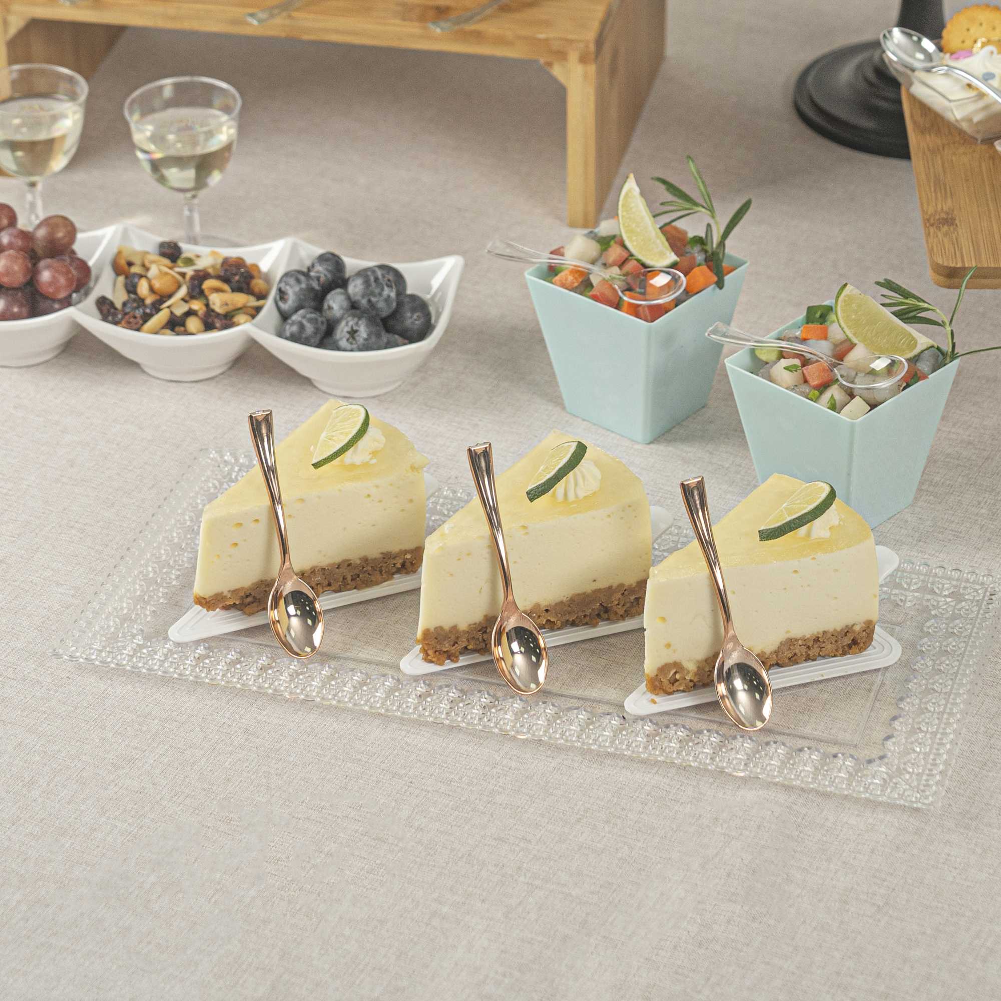 - Deep basin ensures appetizers and desserts stay in place