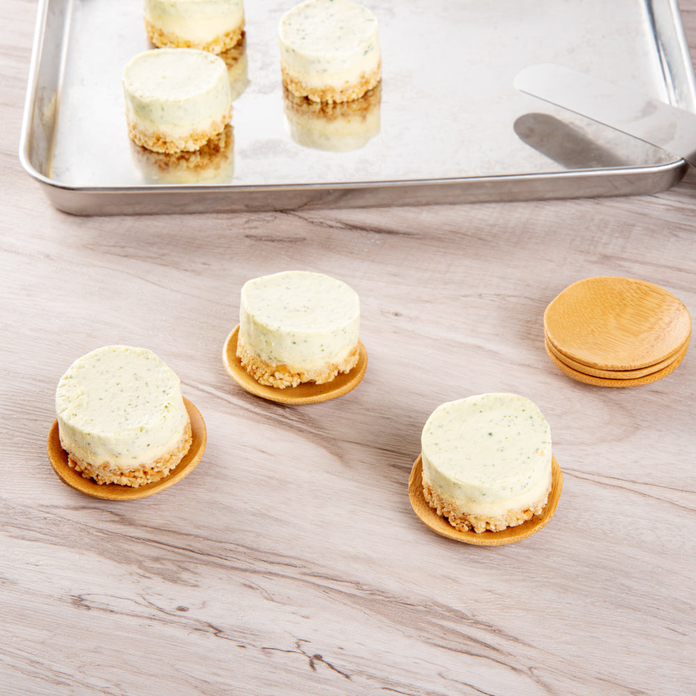 Add a warm and earthy element to your hors d'oeuvres and bite-sized desserts in these Bambuddha organic round bamboo plates. These natural-looking tasting cups are the ideal plating vehicle for presenting food in an organically clean way. Utilize these single-use appetizer plates as a fashionable and chic way to serve your cuisine. Whether you're serving raw foods or warm bites of composed dishes, these round bamboo appetizer plates can hold it well. The mini bamboo plates by Restaurantware are designed with a slightly raised rim making it a functional tasting cup for dipping sauce. Hotel restaurants can use these disposable appetizer plates for buffets and cocktail services. Caterers can also use these bamboo plates since they are easy to pack. Each round bamboo appetizer plate measures 2.5 inches in length and 2.5 inches in width and ships in bulk in a 100 count box.