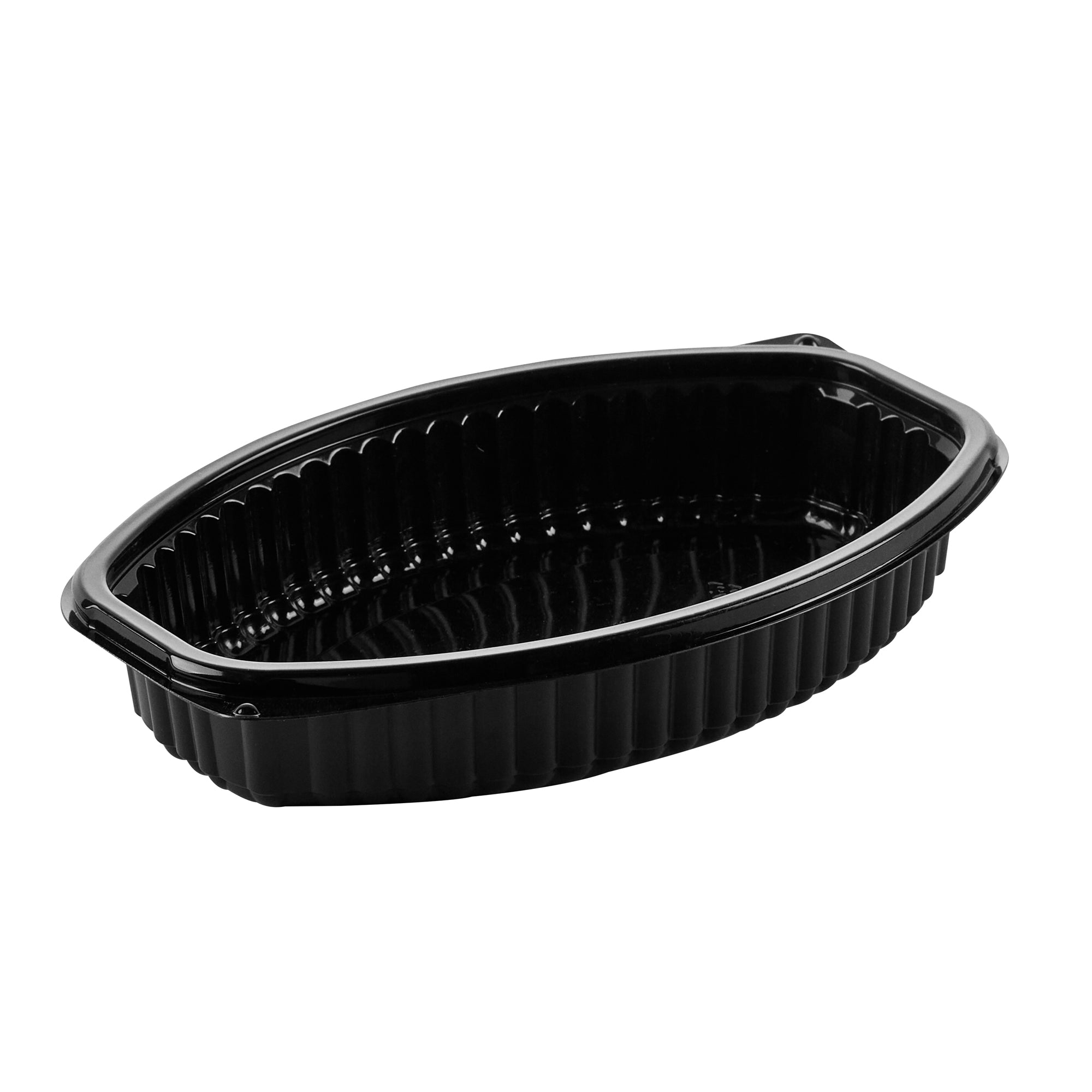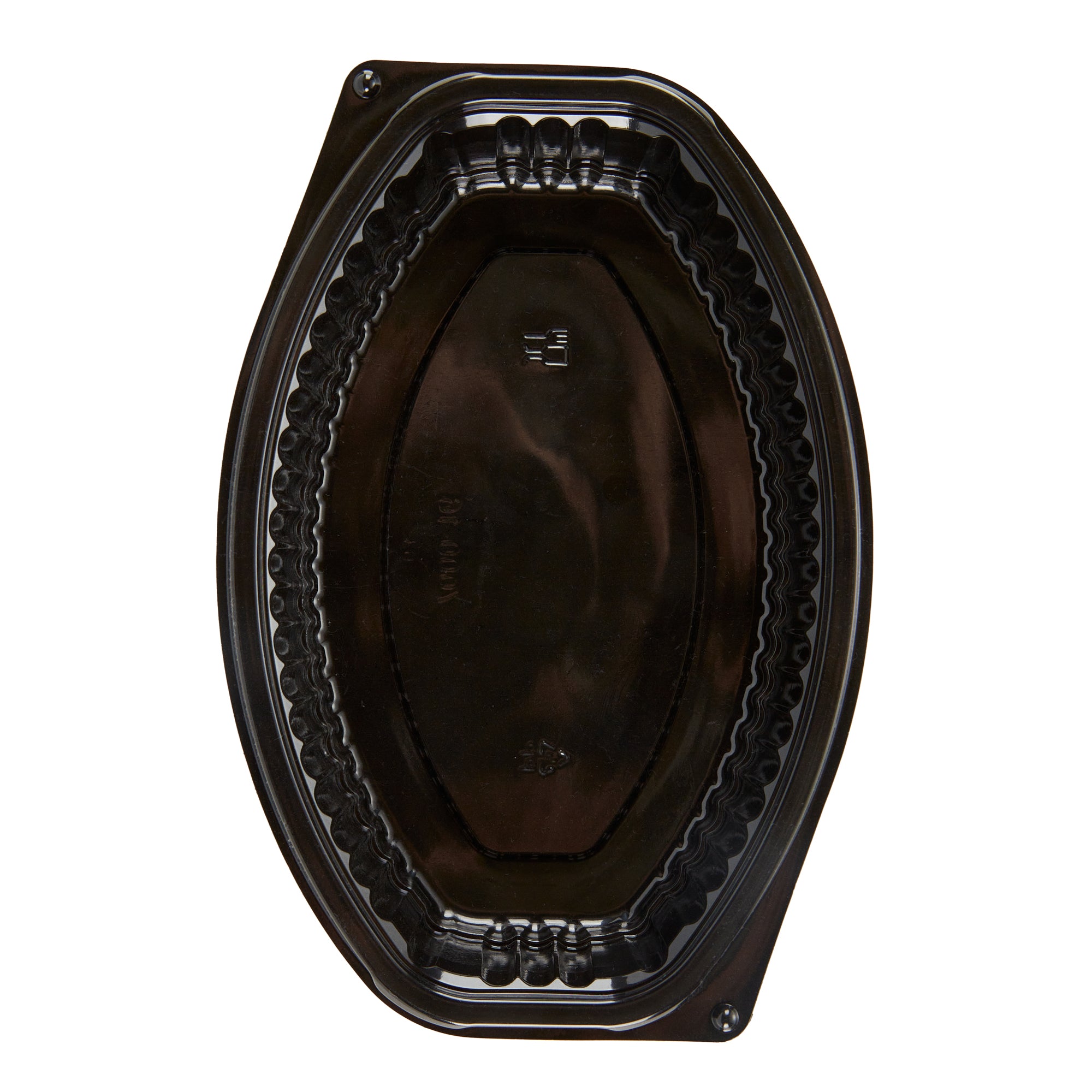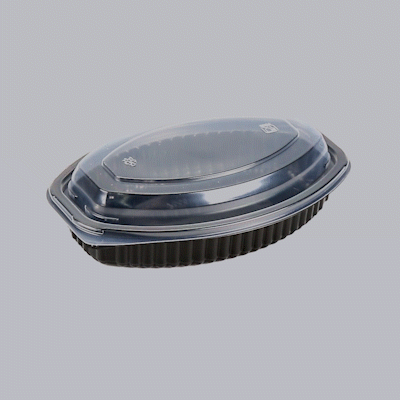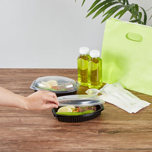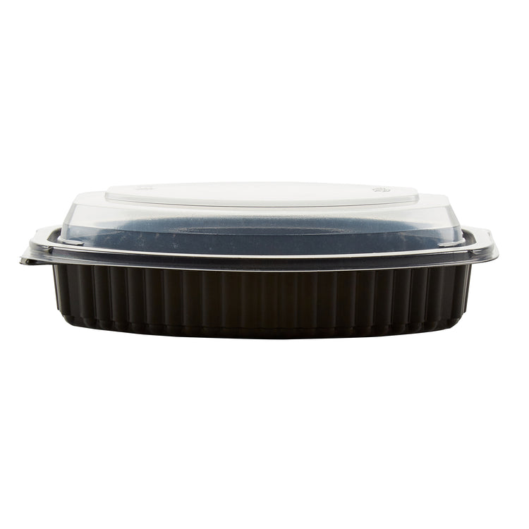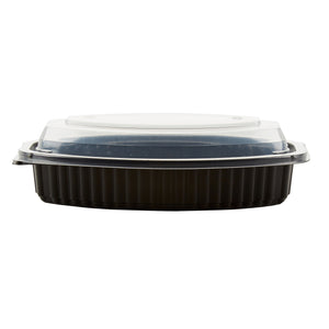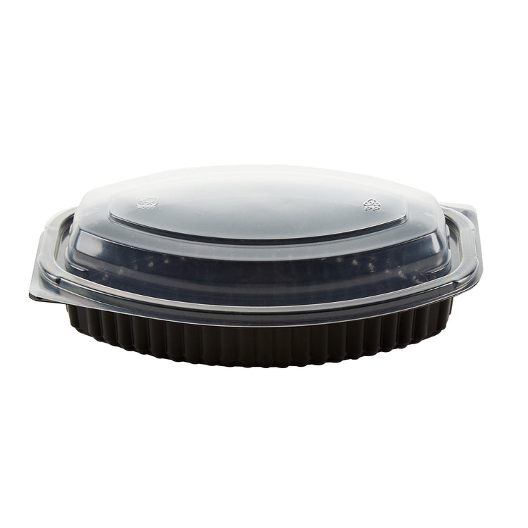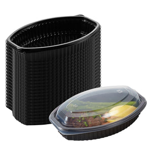 16 OZ OVAL BLACK PLASTIC FOOD CONTAINER - WITH CLEAR LID