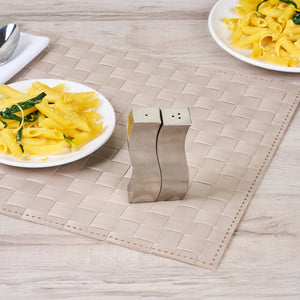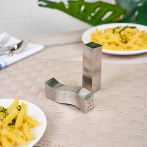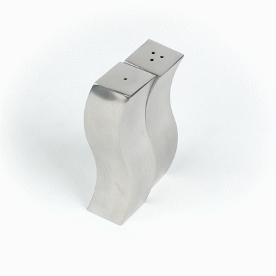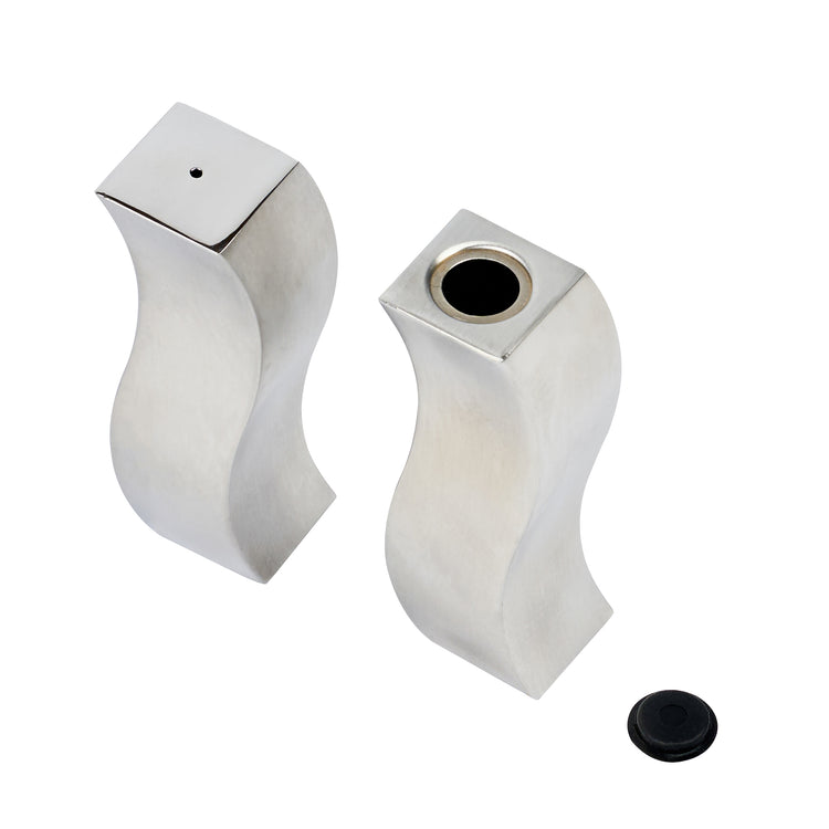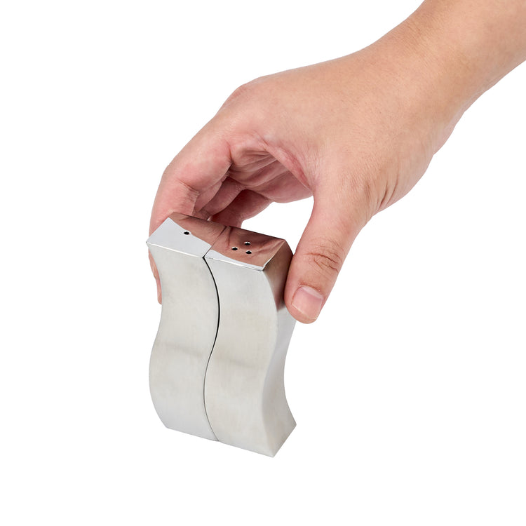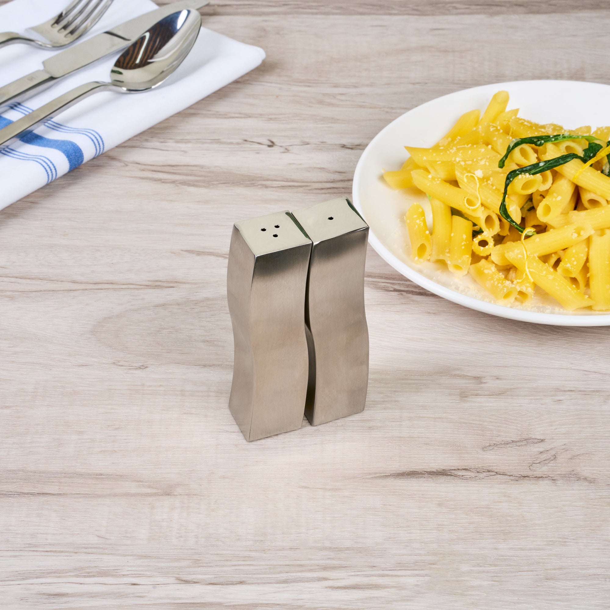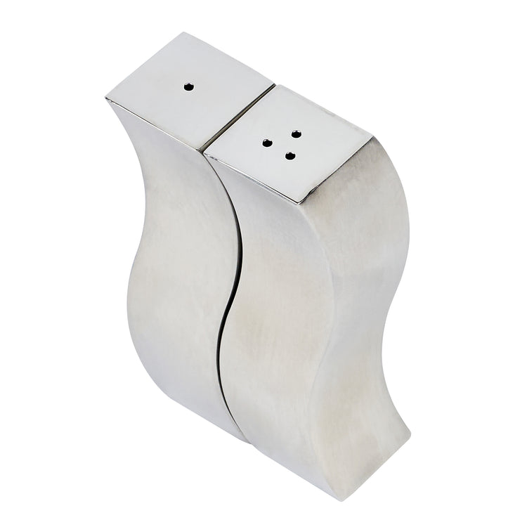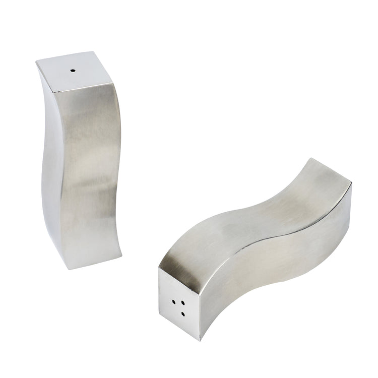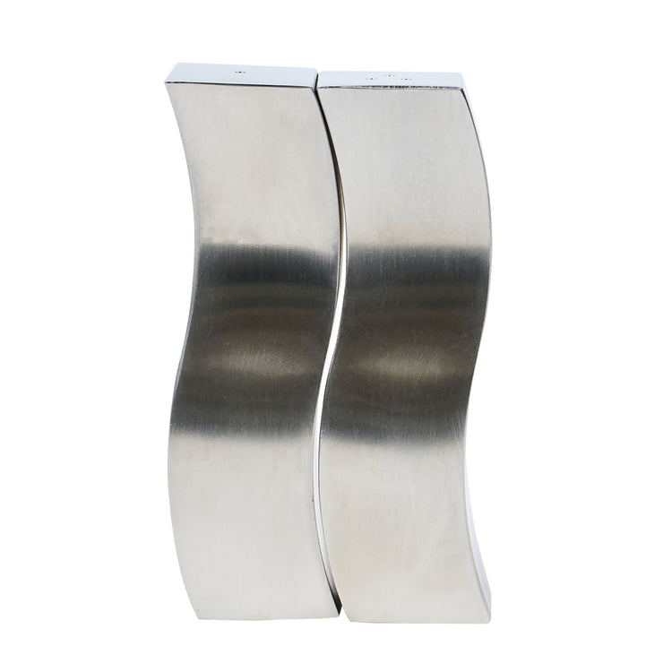 SILVER STAINLESS STEEL WAVY SALT AND PEPPER SHAKER SET