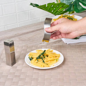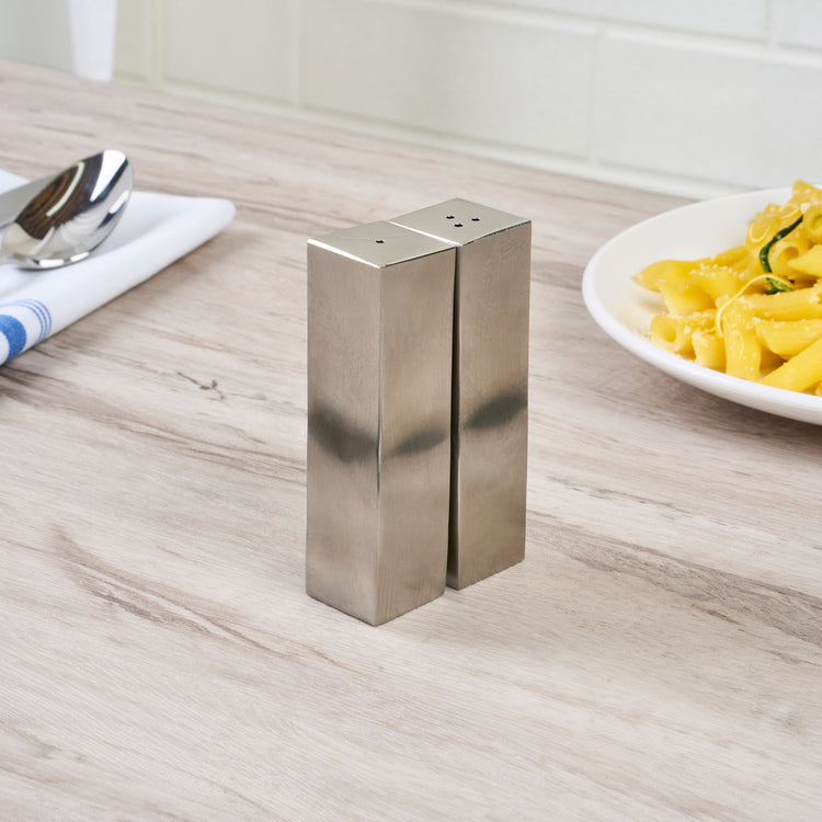 Enhance your dining ambiance with stylish seasoning solutions. The Chef 101 Stainless Steel Salt Shakers feature a sleek stainless steel design that elevates dining presentation, making them a must-have for sophisticated table settings. These silver salt and pepper shakers boast a trendy wedge style, seamlessly fitting into bars and catered events while adding a touch of modern elegance. With a compact size of 1 inch by 1 inch by 3.8 inches, these modern tabletop shakers maximize space efficiency without sacrificing functionality. Constructed from durable stainless steel, they ensure longevity and resistance to corrosion, perfect for high-traffic foodservice environments. Additionally, their dishwasher-safe attribute simplifies cleanup, easing the workload in busy kitchens. Transform your restaurant or catered event with these versatile and stylish shakers. Each order includes 1 Chef 101 Stainless Steel Salt Shaker.