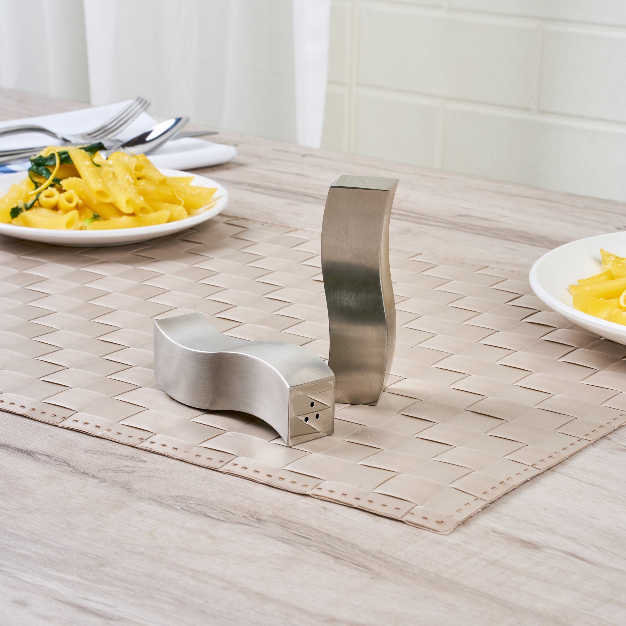 SILVER STAINLESS STEEL WAVY SALT AND PEPPER SHAKER SET