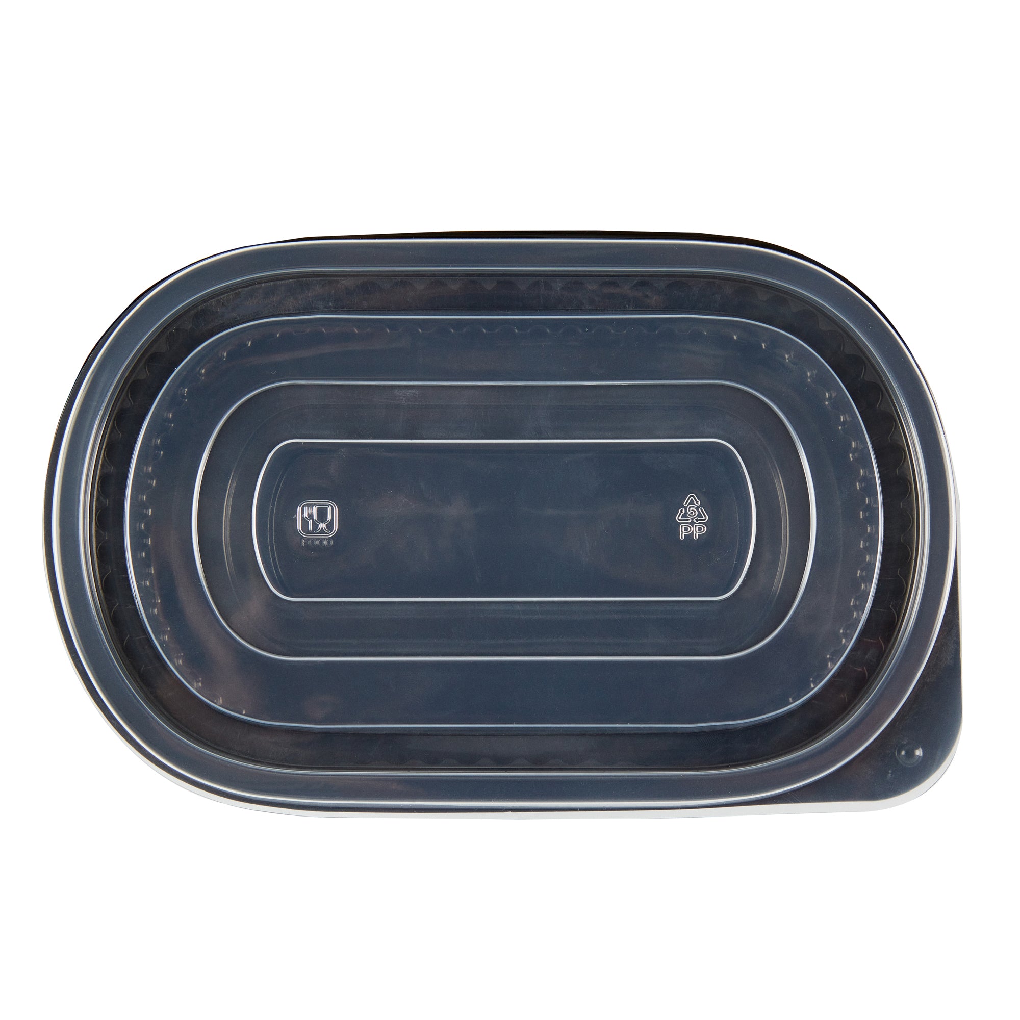 25 OZ OVAL BLACK PLASTIC FOOD CONTAINER - WITH CLEAR FLAT LID