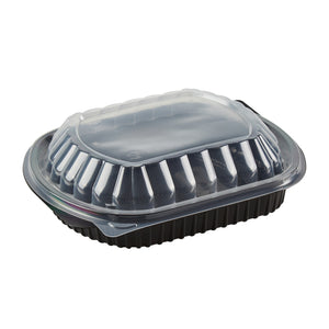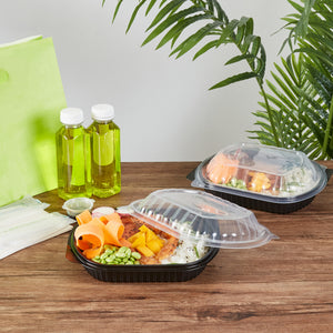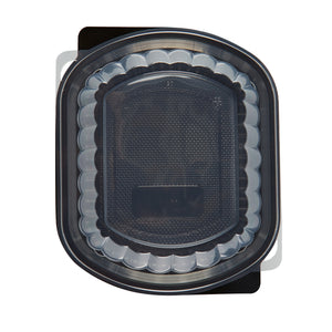 34 OZ OVAL BLACK PLASTIC FOOD CONTAINER - WITH CLEAR LID