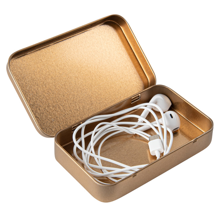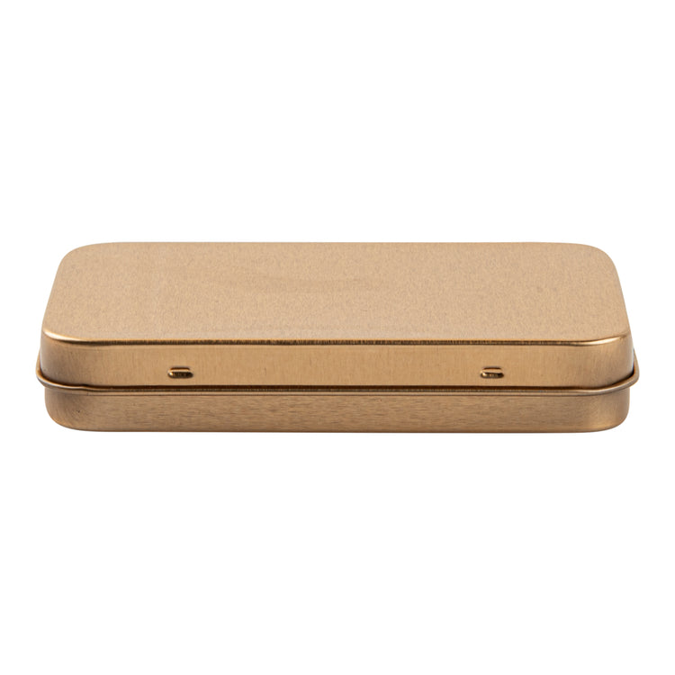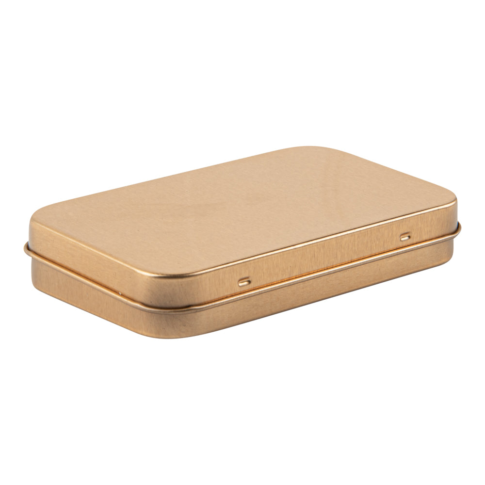6 OZ RECTANGLE GOLD TIN CONTAINER - WITH HINGED LID