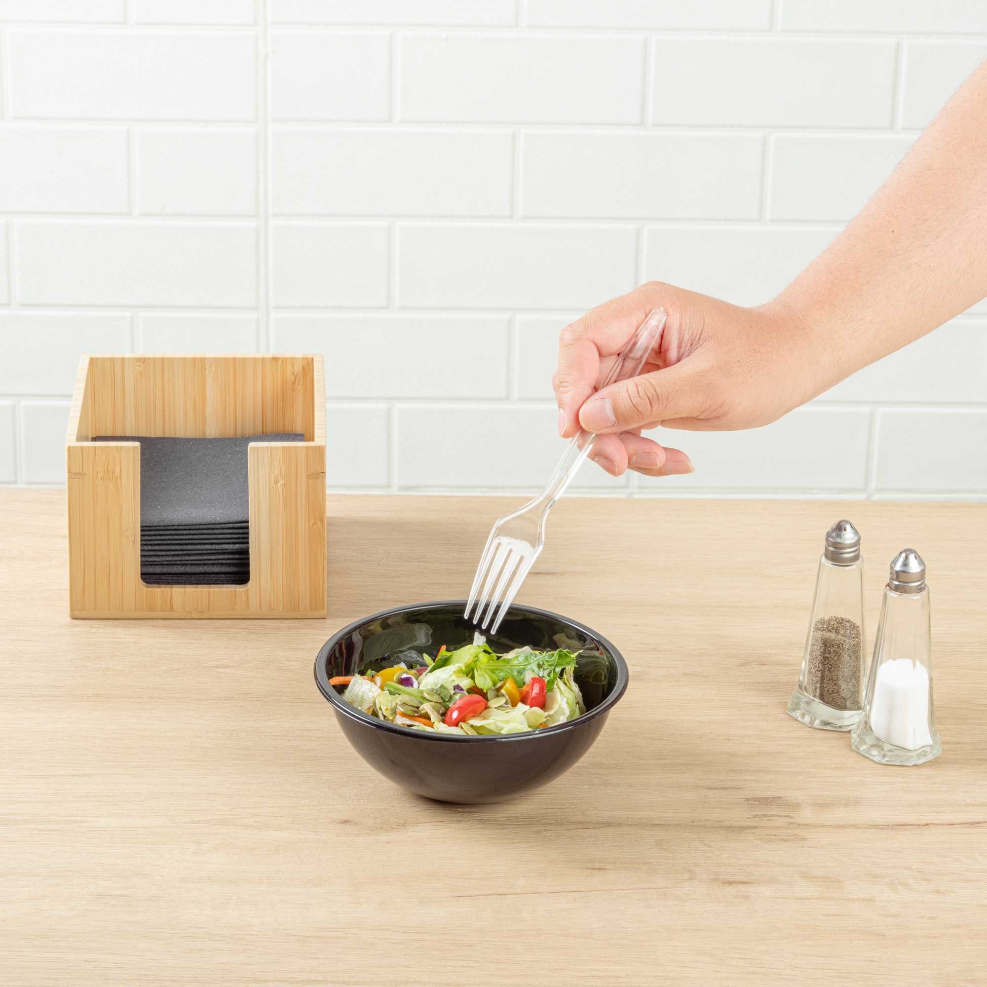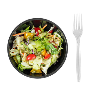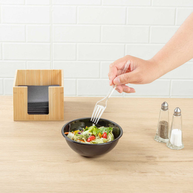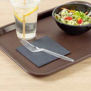 Easily grip and lift your delicious foods with our Chef 101 Clear Plastic Forks. These high-quality forks feature a durable construction that works to resist cracking and bending during use. With a durable plastic construction, these black plastic forks work great with wet and dry foods. Easily recyclable, these sustainable forks reduce your carbon footprint. Designed with a mesmerizing crystal-clear finish, these plastic utensils can be easily dressed up or dressed down for any occasion. Measuring 7 inches in length, these full-size plastic forks elevate the look of any tablescape or place setting. Shipped in a 250 count box.