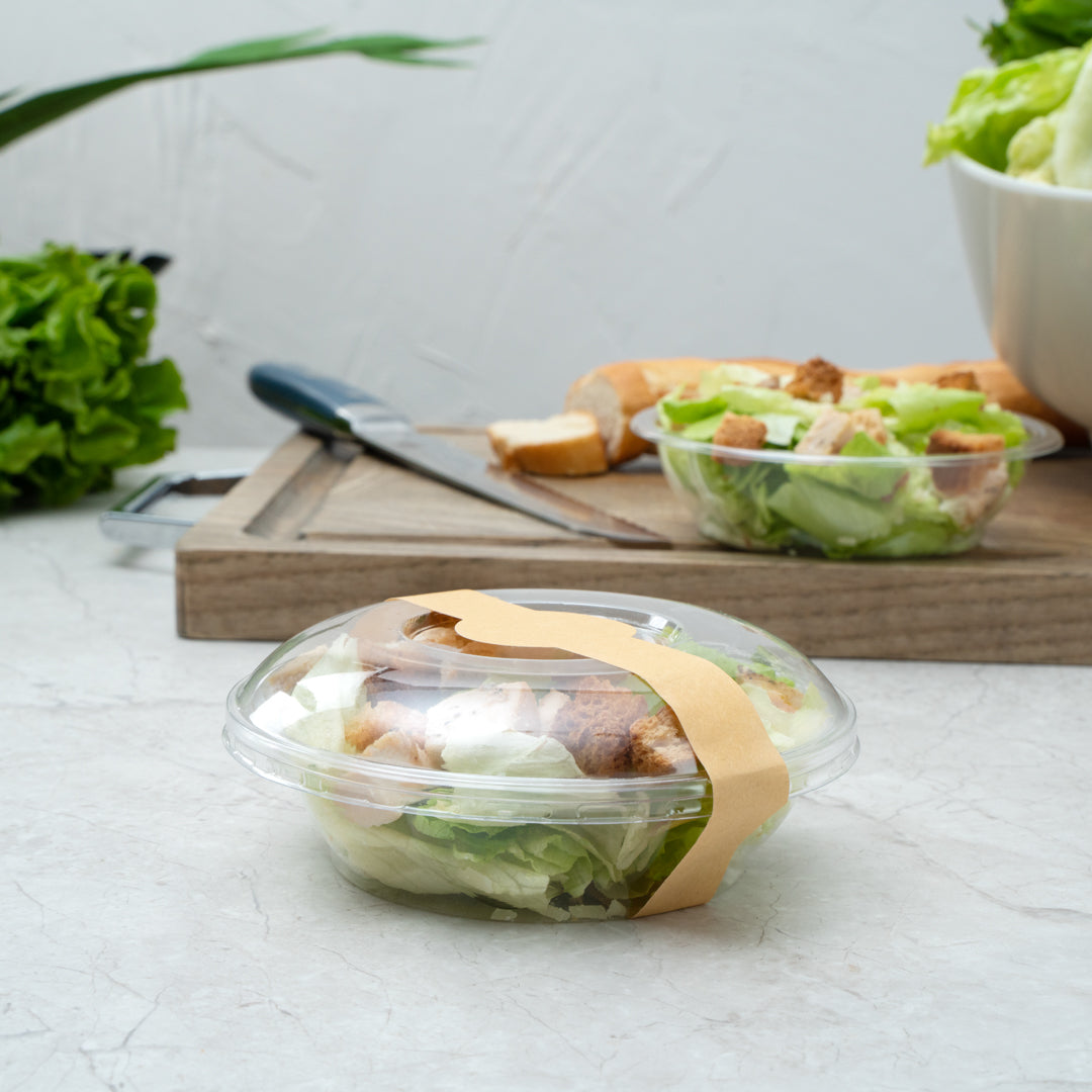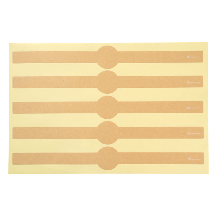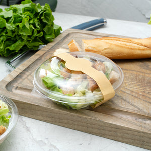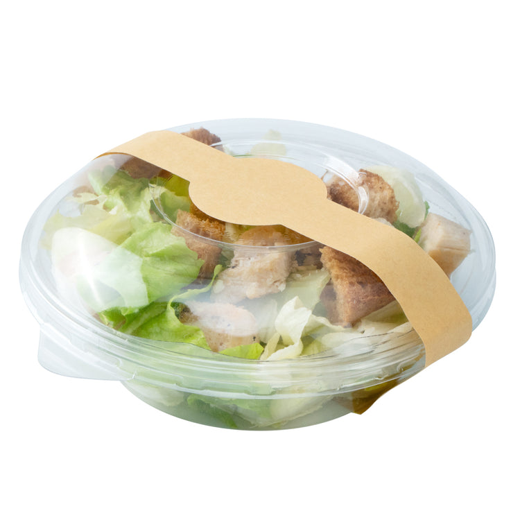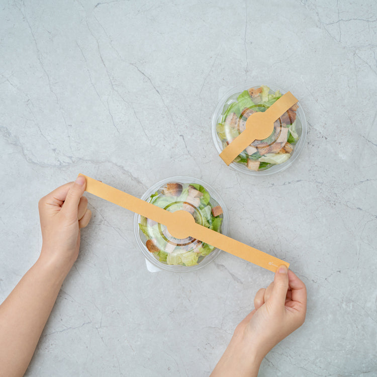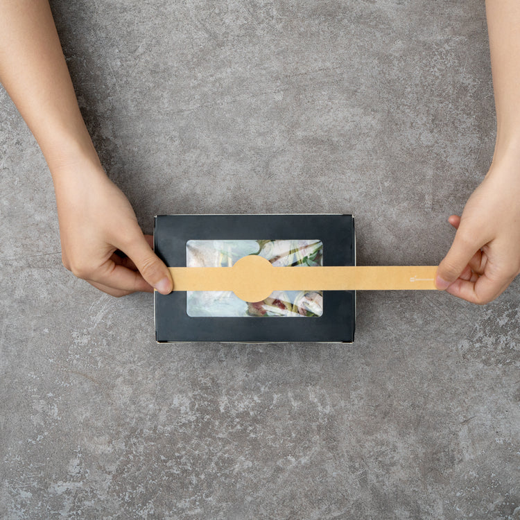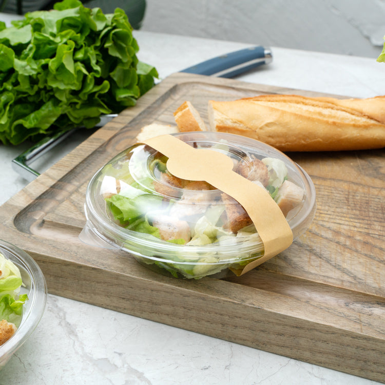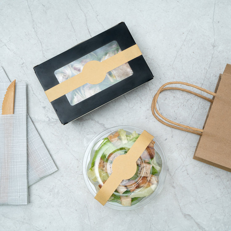 Use our Chef 101 Round Kraft Paper Packaging Bands to make your packaging supplies stand out. These take out bands feature a self-adhesive sticker on the back of the band which allows you to tightly seal your containers for take out and delivery services with ease. Each packaging belly band is designed to wrap around food containers to add an extra layer of protection and keep them shut. Featuring a kraft finish, these self-sealing belly bands allow you to create a cohesive look with the rest of your take out supplies. Measuring 12 inches long by 1.5 inches wide, these self-adhering belly bands wrap around numerous sized containers from our Cafe Vision, Asporto, and Pulp Tek collections to keep meals protected. These self-adhering bands arrive in a sheet to preserve their strength and quality. Shipped in a 100 count box.