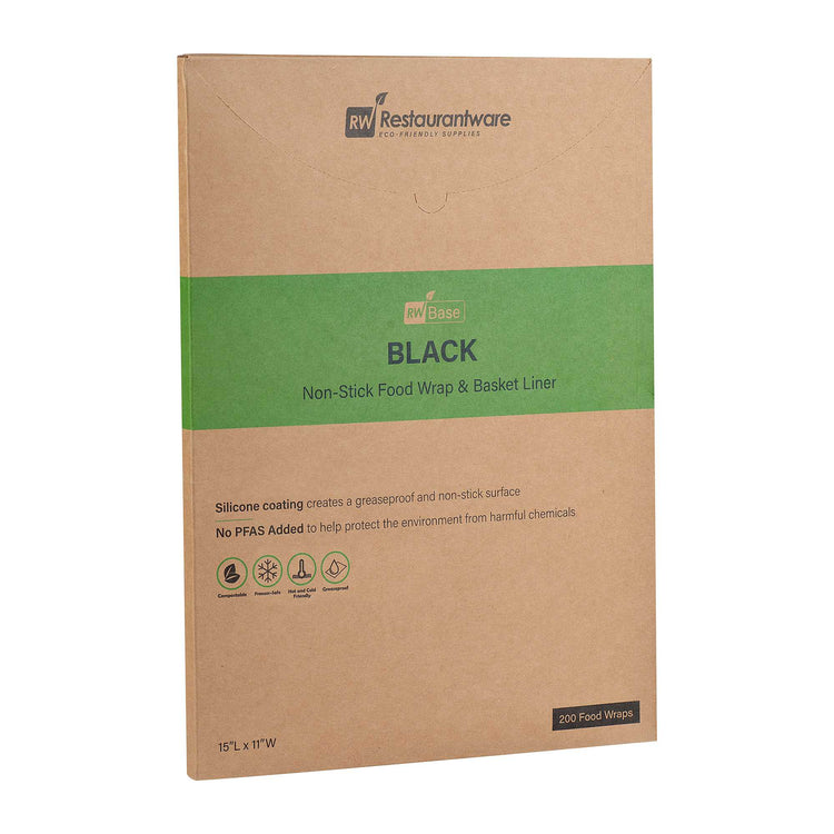 Elevate your food presentation with our Chef 101 No PFAS Added Black Papers Food Wrap and Basket Liners. These food wraps are constructed with premium paper, no PFAS Added, and are commercially compostable. Created with a greaseproof silicone coating, these taco paper wraps ensure no unwanted grease seeps onto your customers' hands or surfaces. Showcasing a classy black finish, these deli papers provide an upscale touch to your meals and are ideal for any occasion. These sandwich wrap papers are remarkably versatile, being freezable, allowing you to prep meals ahead of time. With their disposable nature, these recyclable basket liners make post-meal cleanup a breeze. Precut to a size of 15 inches by 11 inches, these wraps for food offer ample space to comfortably wrap up your delectable dishes. Sold in a 200 count box.