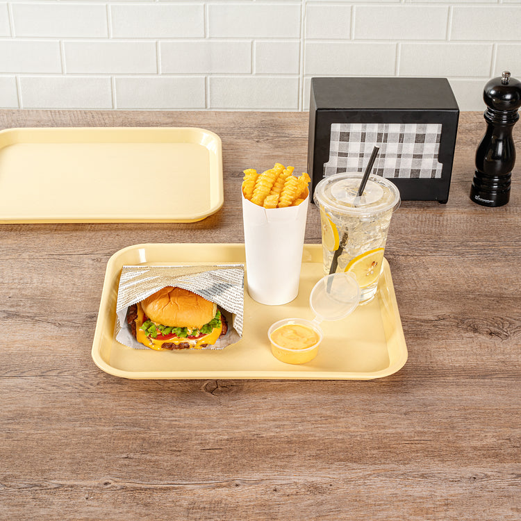 The wide surface of these fast food trays provides ample space, allowing customers to conveniently carry multiple items such as drinks, burgers, fries, and condiments all at once. Make it easy for customers to enjoy their meals.