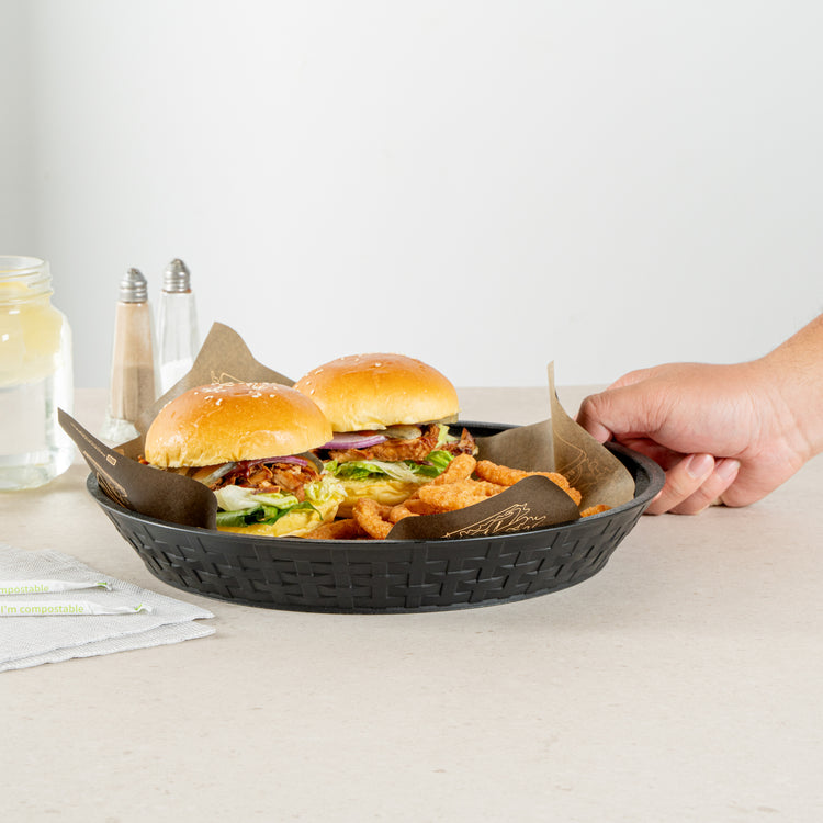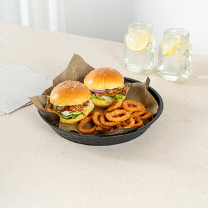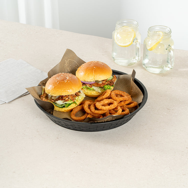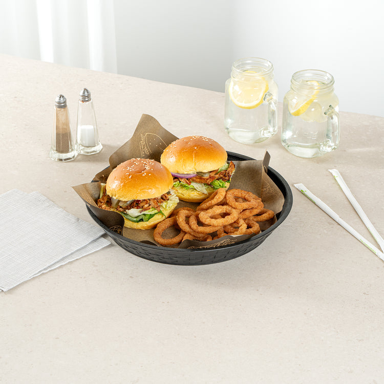 Elevate your dining experience with our Chef 101 Round Black Plastic Diner Platters, expertly designed for stylish and practical food presentation. Made from durable plastic, these lightweight serving trays are suitable for showcasing fried foods, wings, sandwiches, or appetizers. Built-in drain holes enhance post-wash drying, effectively avoiding water pooling on these diner platters. Microwave-secure construction allows for quick reheating, making these plastic platters a convenient choice for busy kitchens. Effortless and time-saving cleanup is ensured with the easy-to-clean design of these reusable platters. For easy portability and space-saving storage, these serving trays are stackable. The bold black color of these food platters adds sophistication, while the lattice sides offer a classic, timeless look. Measuring 12.01 inches in diameter by 1.77 inches in height, these platters provide ample space for generous food portions. Sold in a 100 count box.