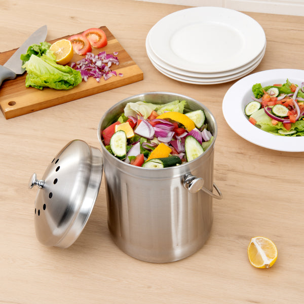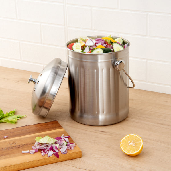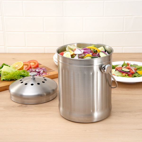 1 GAL STAINLESS STEEL COMPOST BIN - CHARCOAL FILTER