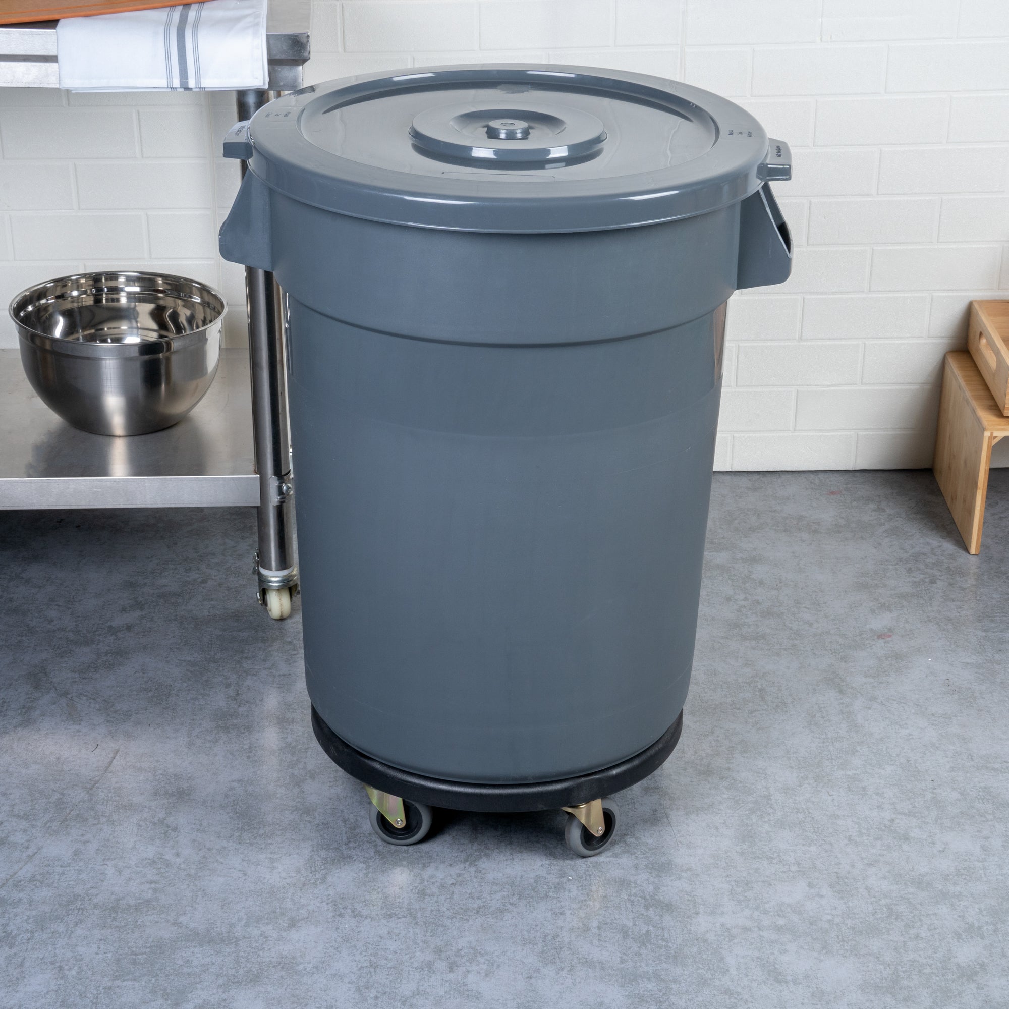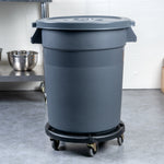 Enhance waste management efficiency with our crack-resistant solution. The RW Clean Crack-Resistant Commercial Trash Can is expertly crafted from premium LLDPE plastic, providing a flexible yet durable design that mimics rubber's bendability while resisting cracks, ensuring long-lasting use in demanding environments. Its reinforced bottom enhances stability, minimizing the risk of tipping over during heavy use, making it an ideal heavy-duty trash can for busy kitchens. With a generous capacity of 20 gallons, this trash can includes a lid and dolly, providing a comprehensive and organized waste management solution that simplifies cleanup tasks. Measuring 22.05 inches in length, this gray commercial trash can seamlessly fits into tight spaces while maintaining a professional appearance. Maximize your operational efficiency with this 20 gallon trash can, designed to meet the rigorous demands of foodservice professionals. Each order includes 1 trash can, 1 lid, and 1 dolly.