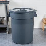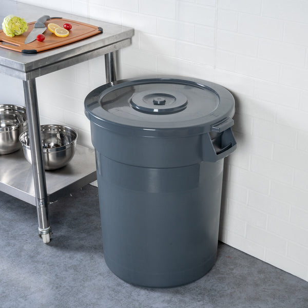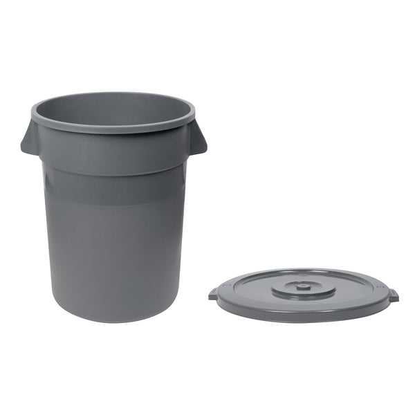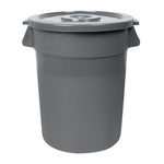 GRAY 32 GAL PLASTIC TRASH CAN AND LID