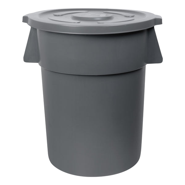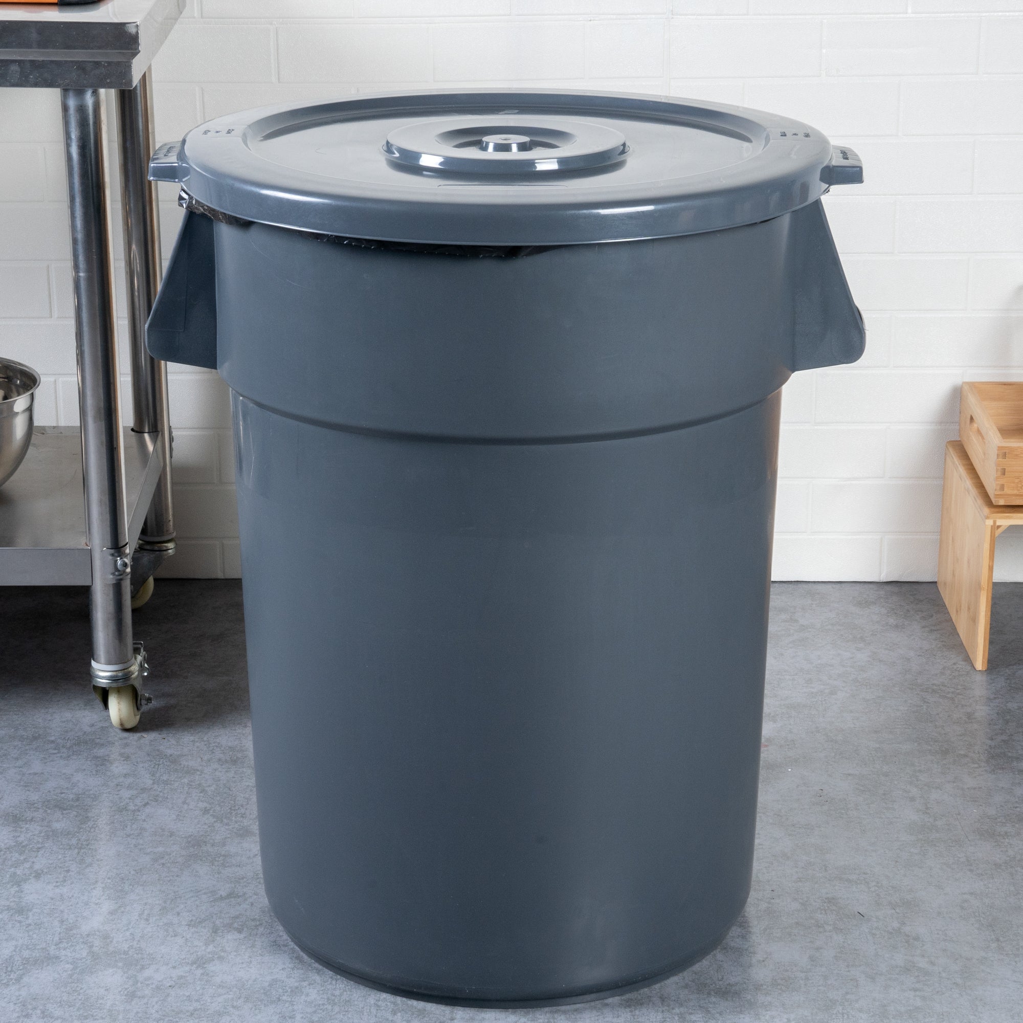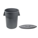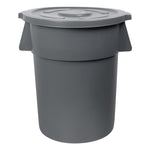 GRAY 55 GAL PLASTIC TRASH CAN AND LID