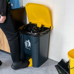 Upgrade your waste management system with our RW Clean 13-Gallon Dark Gray Plastic Step-On Trash Can. Constructed from durable plastic, this pedal trash can is designed to withstand daily use in a busy foodservice environment. The internal hinge lid of this foot pedal trash can ensures a secure closure, effectively trapping all odors inside and keeping your space clean and fresh. Boasting a capacity of 13 gallons, this step-on trash can is suitable for handling large volumes of waste, making it ideal for busy restaurants, cafes, or bakeries. This waste basket is easy to assemble and requires minimal effort, so you can use it quickly. For a hands-free waste disposal experience, this step garbage can is equipped with a non-slip pedal that provides effortless and hygienic operation. This waste receptacle has a smooth surface that is easy to clean by wiping down to maintain its pristine condition. Measuring 17 inches in length by 15.75 inches in width by 23.5 inches in height, this plastic bin has a capacity of 13 gallons and fits seamlessly into your kitchen or dining space without taking up much room. Sold in a 1 count box.