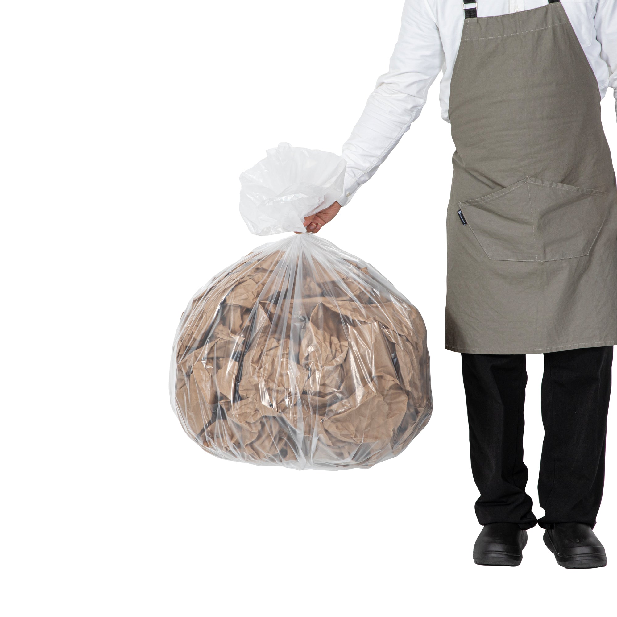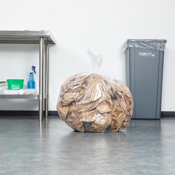 Ensure efficient waste management with reliable leak protection. RW Clean Leak-Proof Trash Bags feature a star seal bottom that prevents leaks, making them ideal for handling wet trash with ease. The even weight distribution across these trash bags simplifies the removal process from bins, helping sanitation staff maintain a smooth workflow. Constructed from heavy-duty plastic, these clear bin liners allow for easy identification of contents, which aids in waste sorting. Measuring 36 inches in width and 30 inches in length, they offer ample capacity to handle up to 20 gallons of waste, making them a versatile choice for busy restaurants and catering events. Optimize your waste management system today with these dependable trash bags. Each order includes 200 RW Clean Leak-Proof Trash Bags.