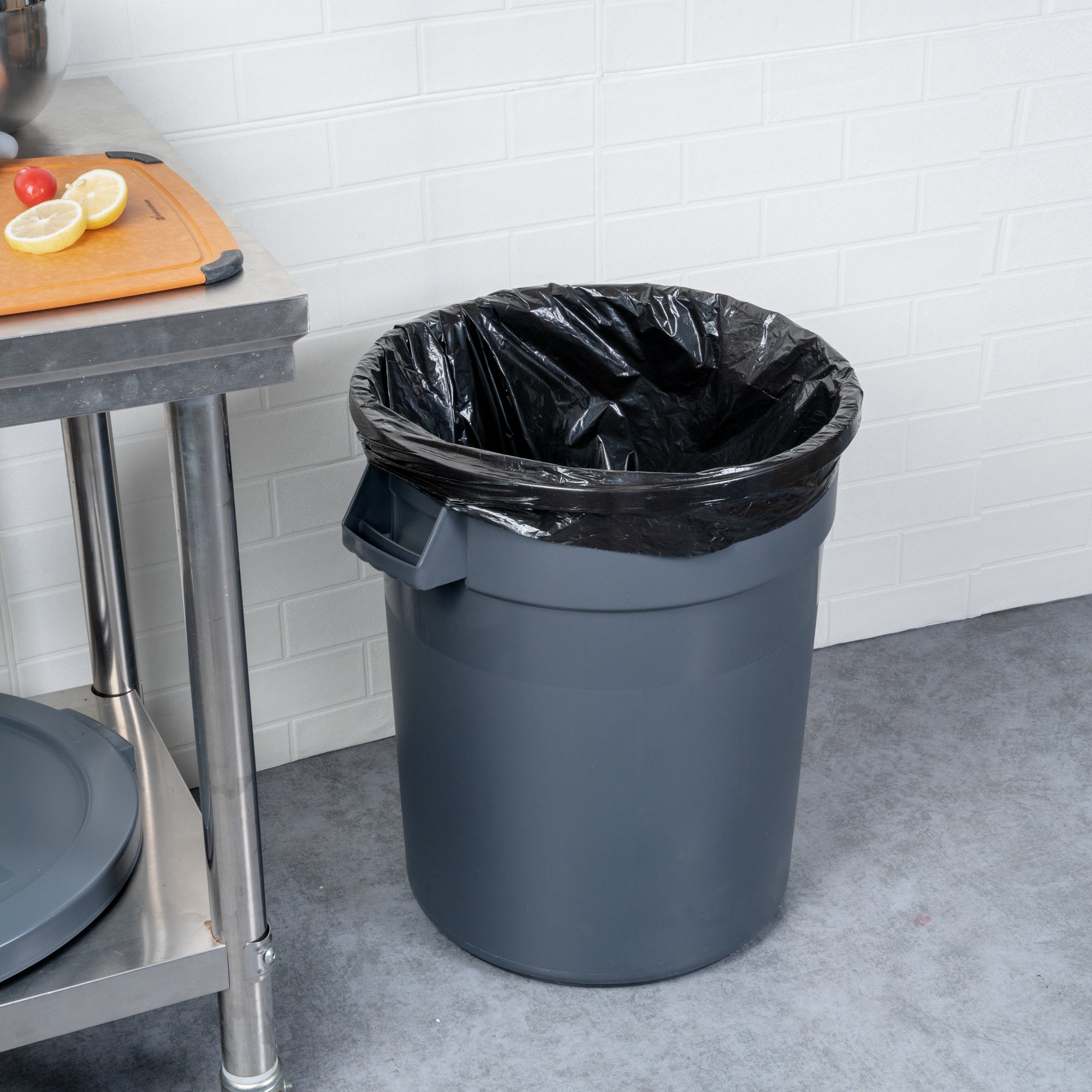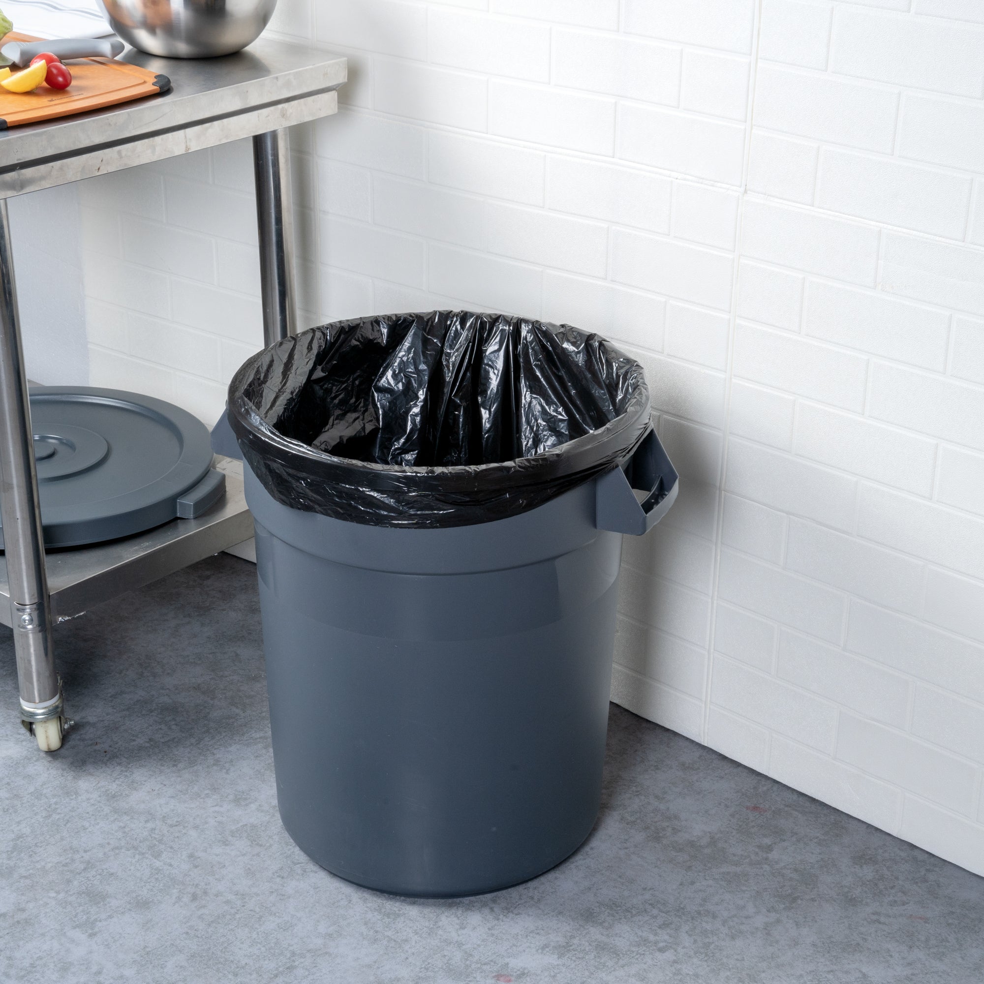 These round plastic containers can be paired with our collection of compatible lids for a reliable storage solution for bulk ingredients or waste disposal. Say goodbye to worries about spills!