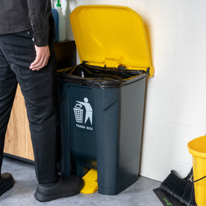 Streamline your waste management with our RW Clean 21-Gallon Dark Gray Plastic Step-On Trash Can. Constructed with durable plastic, this foot pedal trash can is designed to withstand daily use in high-traffic areas. The non-slip pedal of this waste receptacle provides a secure and hands-free waste disposal option, perfect for maintaining hygiene in your facility. Holding up to 21 gallons, this pedal trash can offers ample waste storage capacity, ideal for various establishments. This step garbage can has an internal hinge lid that prevents damage to walls and surfaces, ensuring a clean and professional appearance. With an easy-to-clean, smooth surface, this step-on trash can simplifies the cleaning process, saving you time and effort. This waste basket is easy to assemble, ensuring a quick and straightforward setup for your convenience. Measuring 19.5 inches in length by 17 inches in width by 28 inches in height, this plastic trash can has a capacity of 21 gallons and easily fits in tight spaces. Sold in a 1 count box.