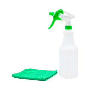 Get more out of your liquid cleaning products with our RW Clean 25-ounce Green Plastic Spray Bottle. This empty cleaning spray bottle has a convenient ergonomic handle with an easy-to-use trigger for a comfortable grip. Crafted with precision, the molded graduations with measurement markers on this spray bottle won't fade after multiple uses. Featuring a leak-resistant seal, the spray bottle nozzle twists on and off this spray bottle securely to prevent messy leaks while cleaning. The nozzle on this high-quality spray bottle has mist and stream settings to help your employees clean efficiently. This reusable spray bottle can contain and spray water, commercial cleaning liquids, or homemade cleaning liquids. Conveniently label-free, this all-purpose spray bottle is perfect for industrial or commercial use. The dark green accents on this all-purpose spray bottle are easily integrated into any color-coded storing system to easily suit your establishment's setting. This 25-ounce spray bottle measures 11.5 inches in height. Available in a 1 count box.