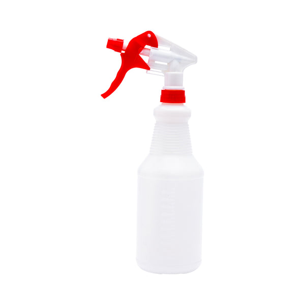 Clean efficiently with our RW Clean 25-ounce Red Plastic Spray Bottle. This high-quality spray bottle features an adjustable nozzle with mist and stream settings. In addition, the nozzle on this empty plastic spray bottle tightly twists up and down on the bottle for a secure seal. Crafted with a specially designed ergonomic trigger, this reusable spray bottle enables comfortable spraying and reduces the chance of hands getting tired during use. The molded graduations and measurement markers on this reusable spray bottle won't fade after several uses. Constructed from durable plastic, this liquid spray bottle is perfect for spraying water or your preferred cleaning solution. The label-free design of this cleaning spray bottle suits commercial settings. This red plastic spray bottle is 11.5 inches tall. Order ships in a 1 count box.