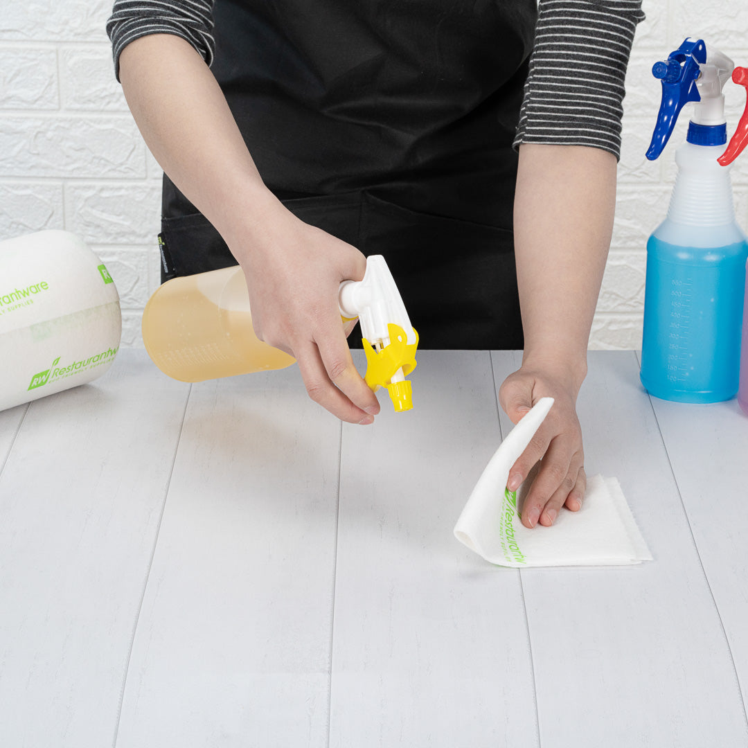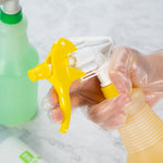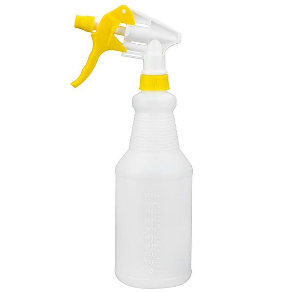 Easily dispense your liquid cleaning products with our RW Clean 25-ounce Yellow Plastic Spray Bottles. These empty plastic spray bottles have a comfortable ergonomic handle with a smooth trigger to reduce stress on your hand. Unlike stamped graduations, the molded graduations and measurement markers on these spray bottles won't fade and precisely indicate the amount of liquids available for long-lasting use. The high-quality trigger on these empty cleaning spray bottles twists on and off for tight and secure closure. As a bonus, the leak-free trigger on these spray bottles also features an adjustable nozzle with mist and stream settings for efficient cleaning. These reusable spray bottles are perfect for water, commercial cleaning liquids, or your homemade cleaning liquids. Ideal for storing all types of cleaning solutions, these label-free spray bottles are perfect for your commercial or industrial establishment. The vibrant yellow accents on these liquid spray bottles suit any color-coded storing system and match a variety of settings. These yellow liquid spray bottles contain up to 25 ounces and measure 11.5 inches in height and 3.1 inches in width. Sold in a 3 count box.
