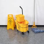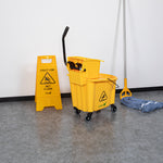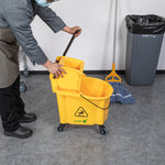 38 QT YELLOW PLASTIC MOP BUCKET - WITH SIDE PRESS WRINGER