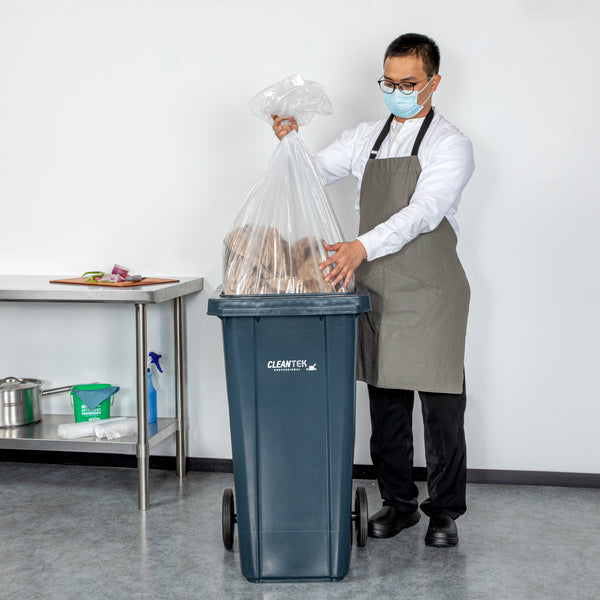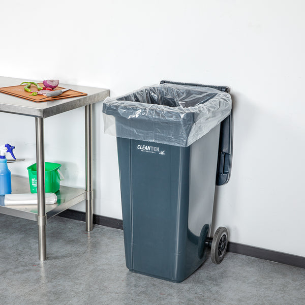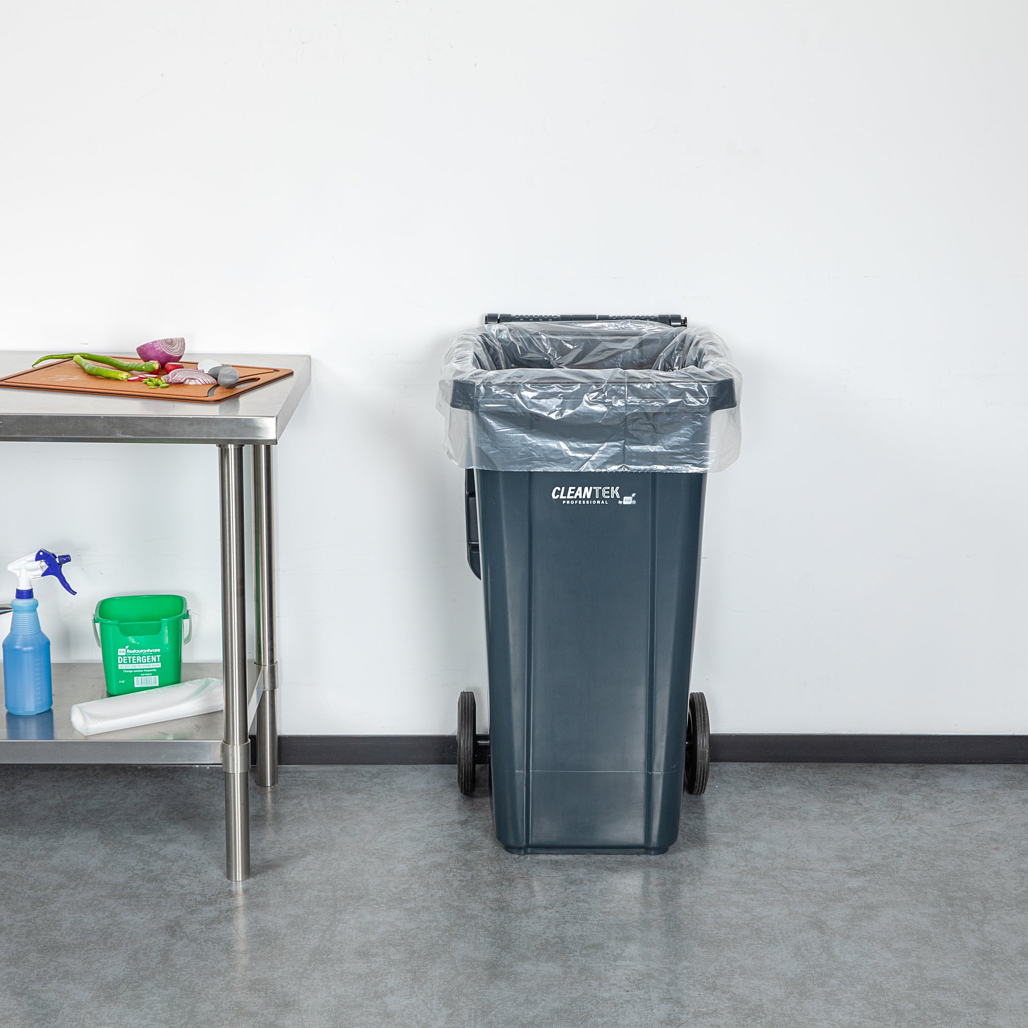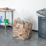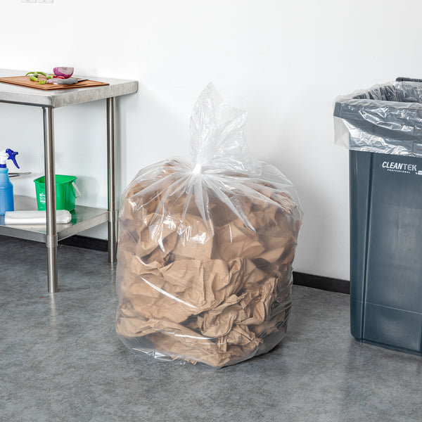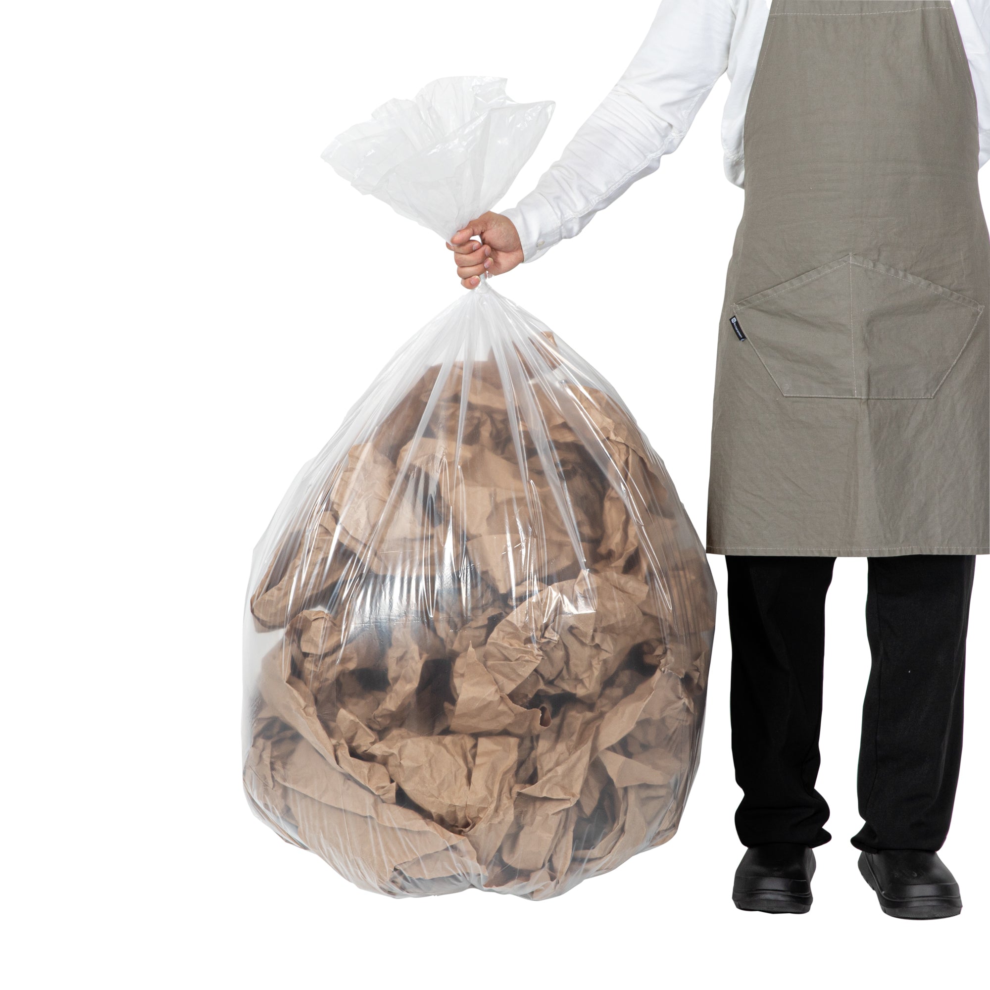 Ensure efficient waste management with virtually leak-proof solutions. RW Clean Leak-Proof 55 Gallon Trash Bags feature a star seal bottom that prevents leaks, making them ideal for wet trash disposal in foodservice environments. These 55 gallon trash bags are crafted from LDPE, providing a 1 mil thickness that delivers durability and reduces the risk of tears and punctures, essential for busy commercial kitchens and event venues. The clear plastic garbage bags offer easy content identification, streamlining sorting and improving operational efficiency. With dimensions of 38 inches in length and 58 inches in width, these bags fit standard 55 to 60-gallon trash cans, accommodating large waste volumes. The star seal trash bags ensure even weight distribution, simplifying bin removal and enhancing convenience. Each order includes 100 RW Clean Leak-Proof 55 Gallon Trash Bags.