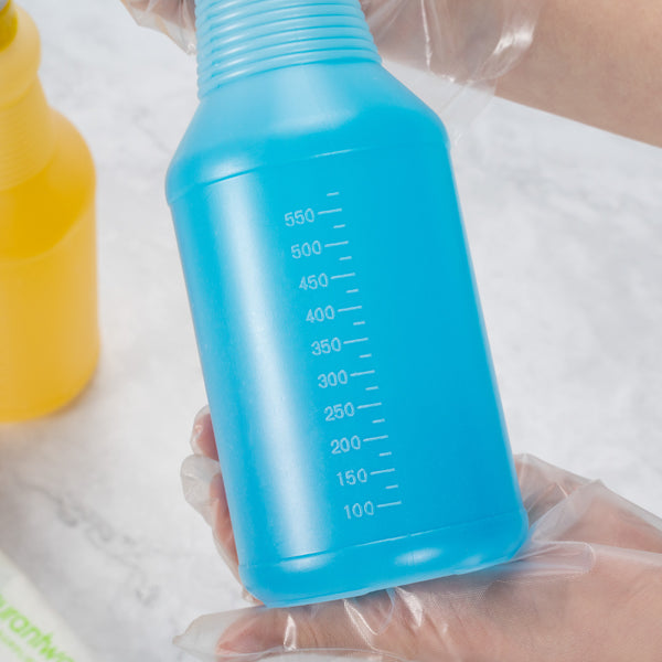 Keep your business spotless with our RW Clean Assorted 25 oz Plastic Spray Bottle Set. This empty spray bottle set has an adjustable nozzle with mist and stream settings for efficient cleaning at your foodservice establishment. Each order includes 1 yellow, 1 blue, 1 red, and 1 green plastic spray bottle, allowing you to stay organized and easily identify the liquids in each bottle. The molded graduations and measurement markers on this cleaning spray bottle set won't fade after multiple uses and allows you to measure cleaning solutions with ease. With an ergonomic trigger, this cleaning spray bottle set provides you with a comfortable way to spray equipment or surfaces while eliminating hand fatigue. This cleaning bottle set features a label-free design, allowing you to conveniently pair bottles with any cleaning solution. Each spray bottle contains up to 25 ounces and measures 3.1 inches in diameter by 11.6 inches in height. You will receive 4 plastic cleaning bottles per order.