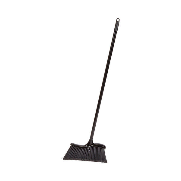 Efficiently sweep up dirt and debris with our RW Clean Black Angle Broom. Featuring an angled broom head, this innovative sweeping broom is specially designed to get into those hard-to-reach areas and easily sweeps up dust and debris. This durable dust broom is constructed to withstand rigorous use in high-traffic areas at your restaurant, cafe, hotel, and other foodservice establishments. Equipped with flagged bristles, this durable black broom is built to effectively capture small particles while the angled design prevents wear and tear from damaging its bristles. This push broom features a dustpan clip that provides space-saving storage to store your broom and dustpan together conveniently. Pair this flagged broom with its coordinating dustpan to streamline your cleanup (SKU: RWT0514). This fuller brush broom measures 12 inches long by 2 inches wide by 39 inches tall. Shipped in a 1 count box. Dustpan is available and sold separately.