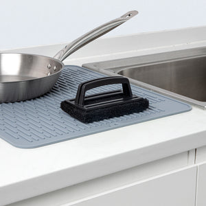 BLACK HEAVY-DUTY SCOURING PAD - MULTI-PURPOSE, WITH HANDLE