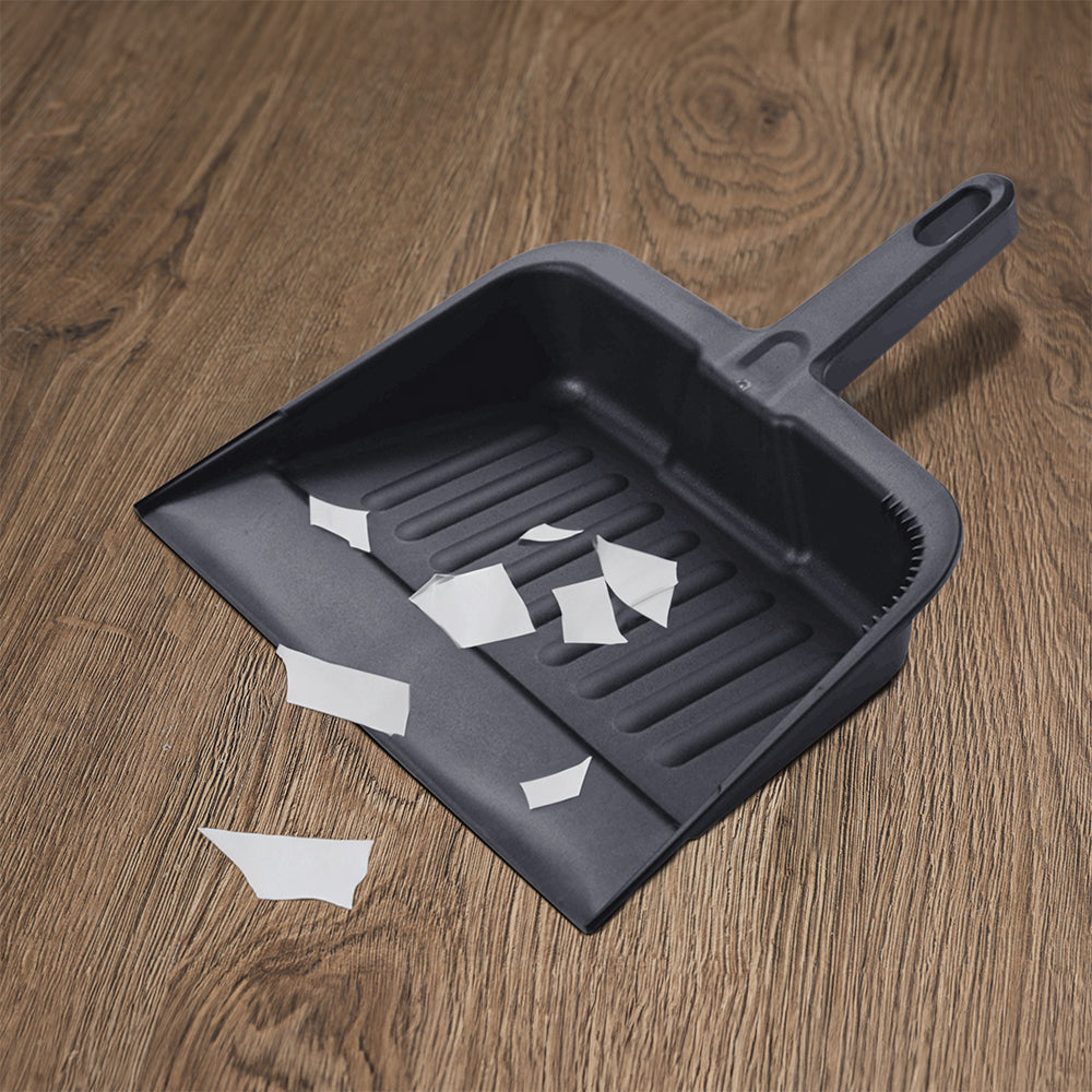 Make sure your business stays clean and tidy with this RW Clean Black Plastic Handheld Dustpan. Featuring a sturdy polypropylene construction, this large dustpan is built to withstand long-term use in busy restaurants, bars, hotels, and other commercial establishments. Its thin, tapered front edge meets the ground seamlessly and makes it simple to sweep up every bit of dust and debris. This black dustpan is equipped with a 6-inch handle that offers an ergonomic grip for improved control during use. The built-in hanging hole of this handheld dustpan allows it to be quickly stowed away after use. This dustpan is made from premium plastic and is designed to resist cracking or warping over time. The length of this plastic dustpan, excluding the handle, measures 7 inches in length. This restaurant dustpan measures 13 inches long with the handle by 12 inches wide by 2.75 inches tall. Sold in a 1 count box.