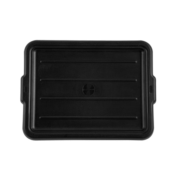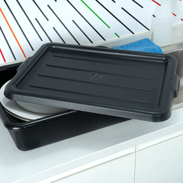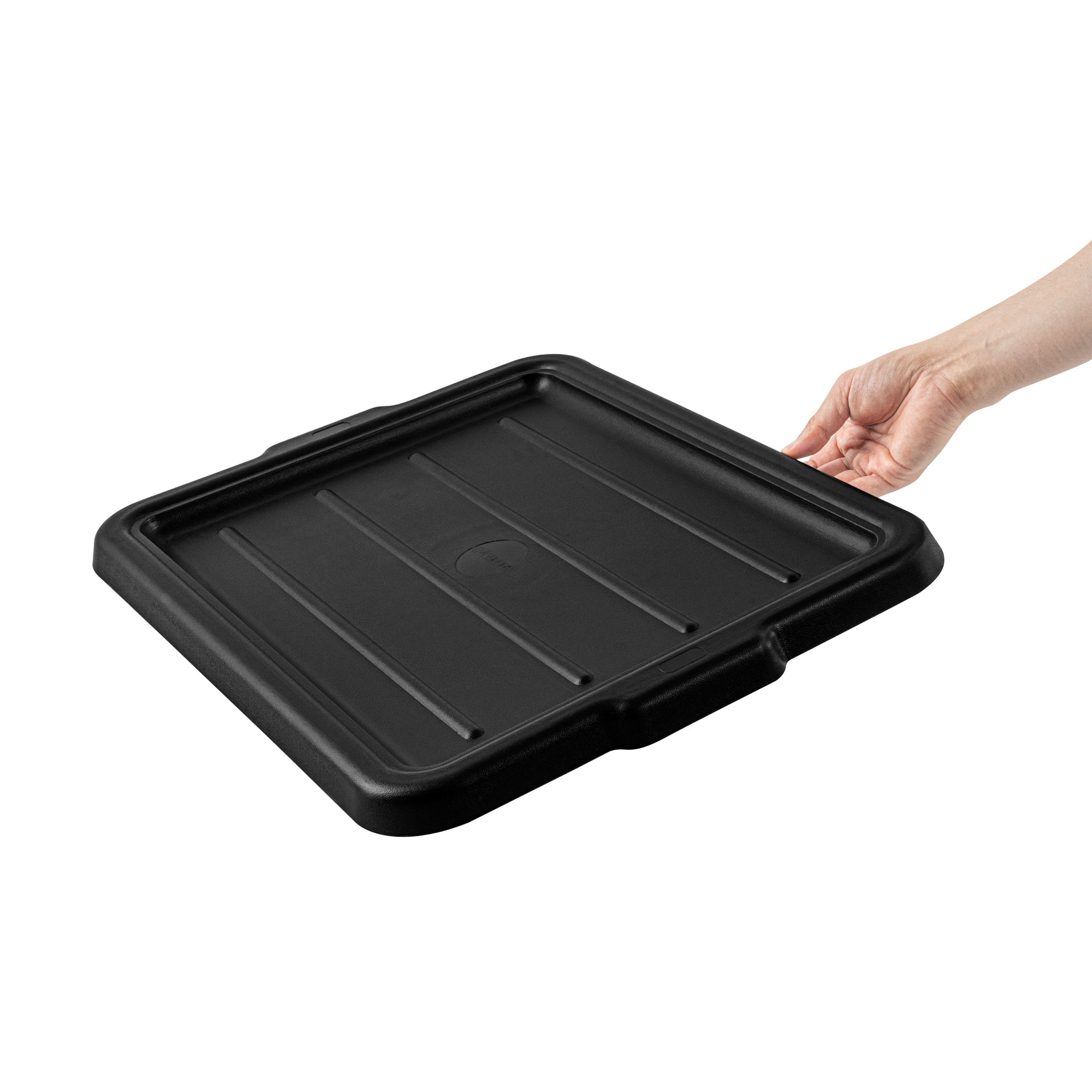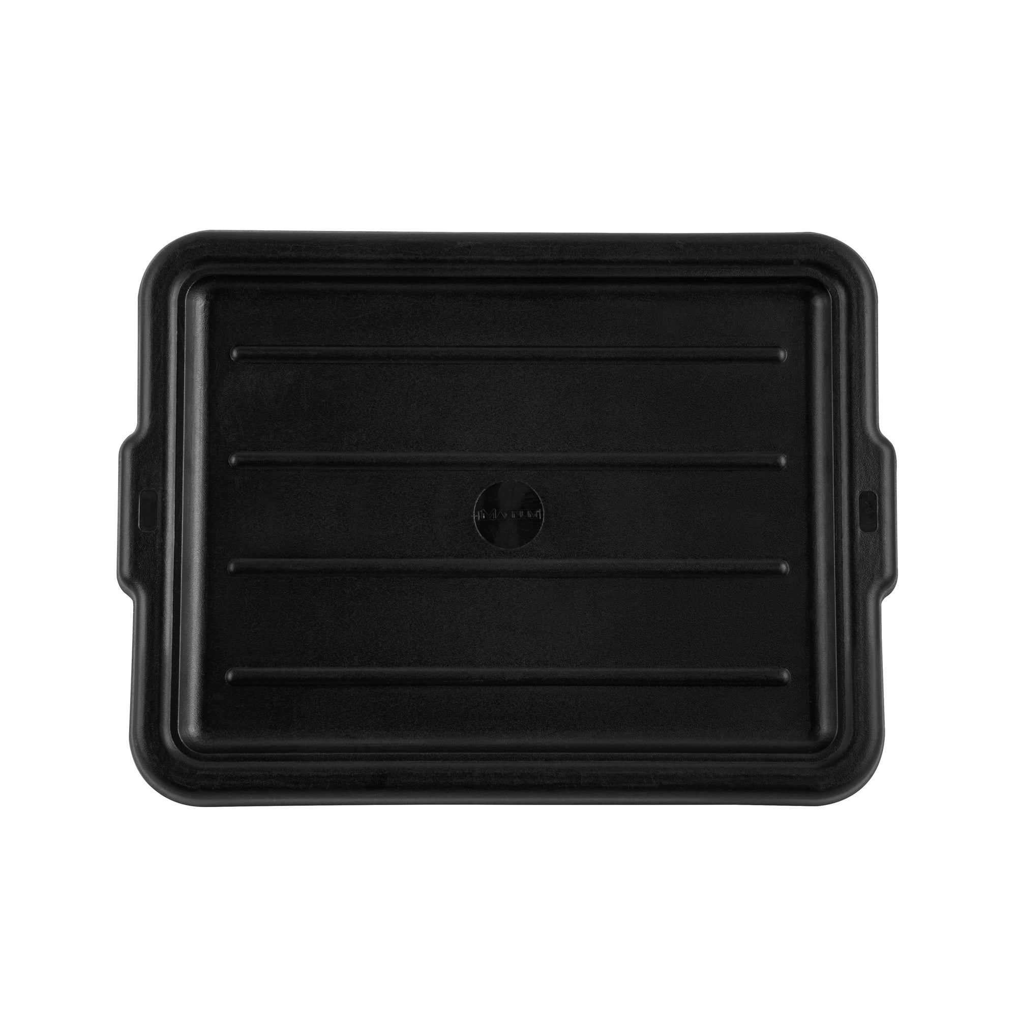 Pair these RW Clean Black Plastic Lids with our coordinating bus tubs to enhance and streamline your cleanup. Designed to fit onto both sizes of our Easy Grip Bus Tubs (SKUs: RWT0470 and RWT0471), these lids make it easy to transport dirty dishes or glassware without creating an additional mess. The built-in handles provide an easy way to secure and carry the lid, while the lid's low-profile design creates a simple and discreet way to bus your tables. Manufactured from durable and crack-resistant plastic, these restaurant bus tub covers are easy to clean and built to withstand long-term commercial use. Pair our selection of heavy-duty bus tubs with lids to create an effective solution for clearing and resetting your tables. Sold in a 1 count box. Bus tubs are sold separately.