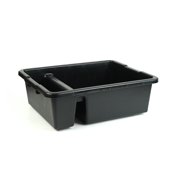 BLACK POLYPROPYLENE BUS TUB / BUS BOX - DIVIDED, DEEP, EASY GRIP