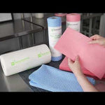 Make it easy for staff members to clean windows or tabletops with our RW Clean Blue Viscose All-Purpose Wipe Rolls. Made from viscose, a plant-based cellulose fiber, this reusable cleaning cloth is biodegradable and commercially compostable and provides you with an eco-friendly way to clean kitchen equipment while reducing your carbon footprint. This dish wipe are naturally antibacterial, allowing you to wipe down stoves, windows, or chairs without accumulating bacteria and leaving unsightly streaks behind. With a premium construction, this disposable cloth can be conveniently washed by hand or in a commercial washing machine to last up to 4 times longer than single-use paper towels. This streak-free wipe roll features a unique blue and white pattern, allowing you to implement them into your color-coded cleaning system and easily distinguish its use. Featuring a perforated design, this durable wipe roll is pre-sized into 50 sheets to offer you a simple way to dispense sheets and eliminate waste. Each kitchen wipe measures 11 inches long by 11 inches wide, allowing you to effectively dust, clean, or wipe down any surface with ease. You will receive a total of 1 roll per order. These items will only degrade outside of the traditional solid waste stream.