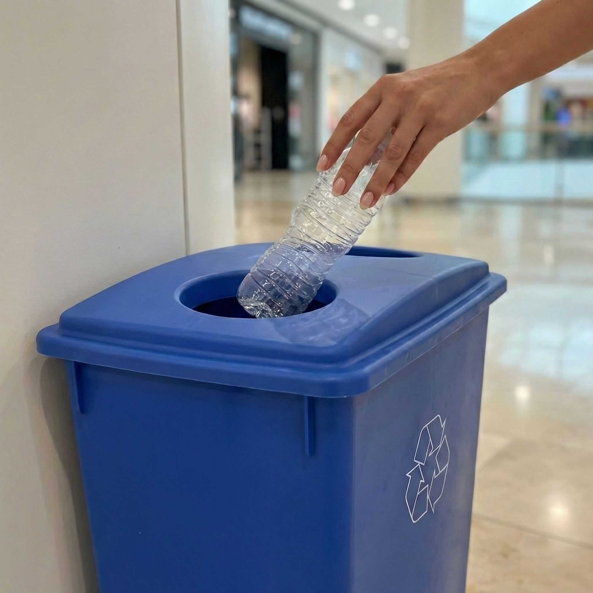 - Labeled design guides both employees and customers to dispose of recyclable plastic only