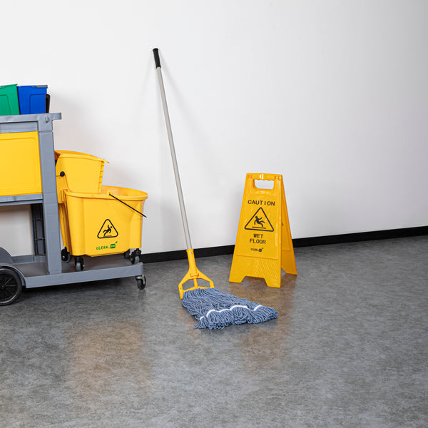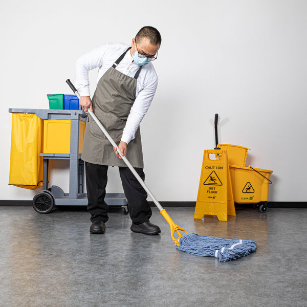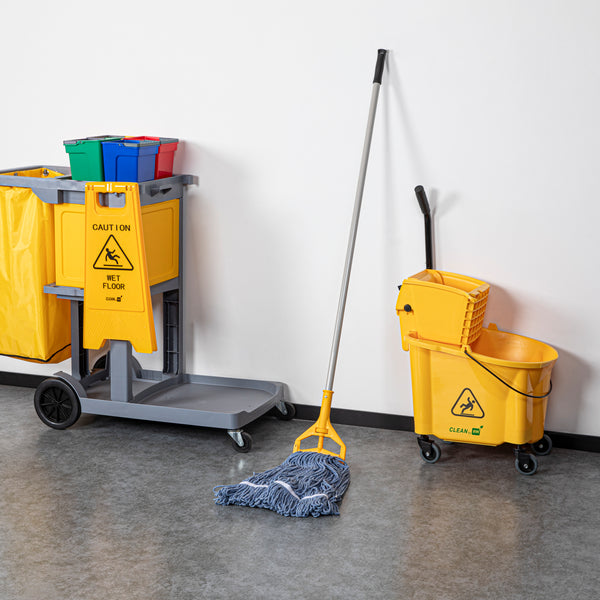 Clean your floors with ease by using our RW Clean Gray Iron Wet Mop Handle. Featuring a quick side-release design, this wet mop handle allows your mop head to effortlessly slide off without the mess. This gray mop handle provides an easy way to remove and replace mop heads to streamline your cleanup. Crafted from high-quality iron, this commercial mop handle won't break or bend when scrubbing floors at your bar, hotel, restaurant, or other foodservice establishment. This 61-inch long mop handle conveniently lets you get into those hard to reach areas to successfully clean your floors. Coordinate this durable mop handle with its compatible mop heads (SKU: RWT0570W & RWT0570BL). Mop heads sold separately. Measuring 7.5 inches wide, this long-lasting mop handle is available in a 1 count box.
